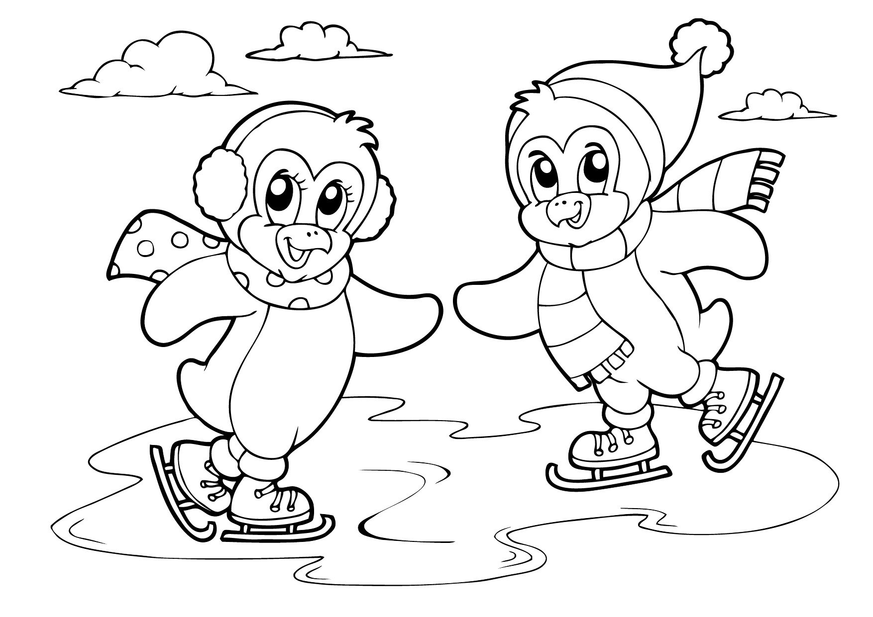 Пингвин на коньках раскраска
