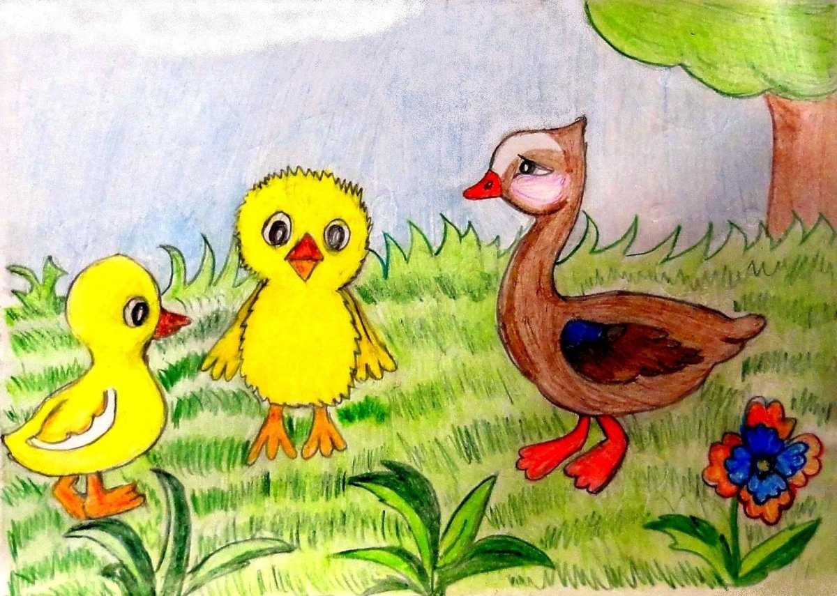 Цыпленок и утенок раскраска