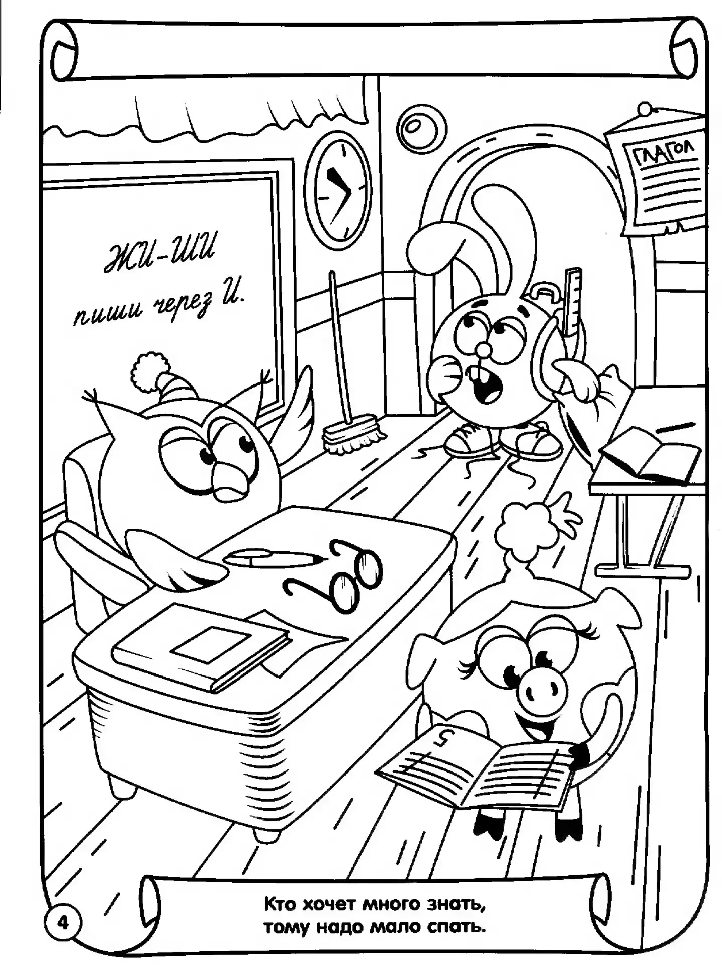 Смешарик с книжкой раскраска