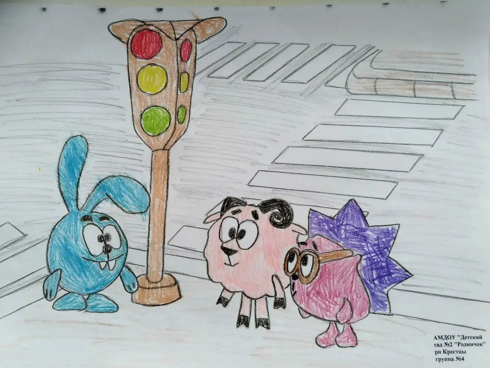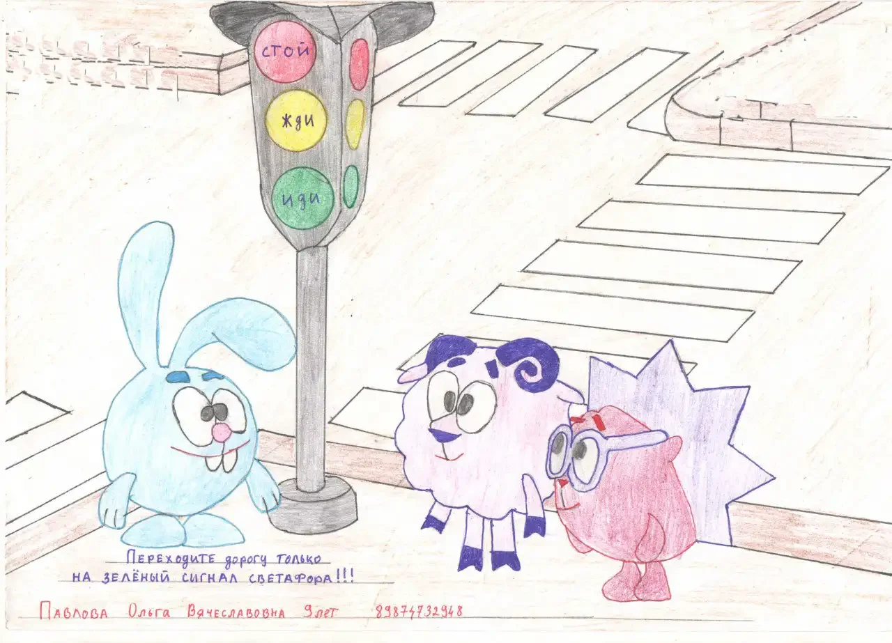Раскраска безопасность на дороге смешарики