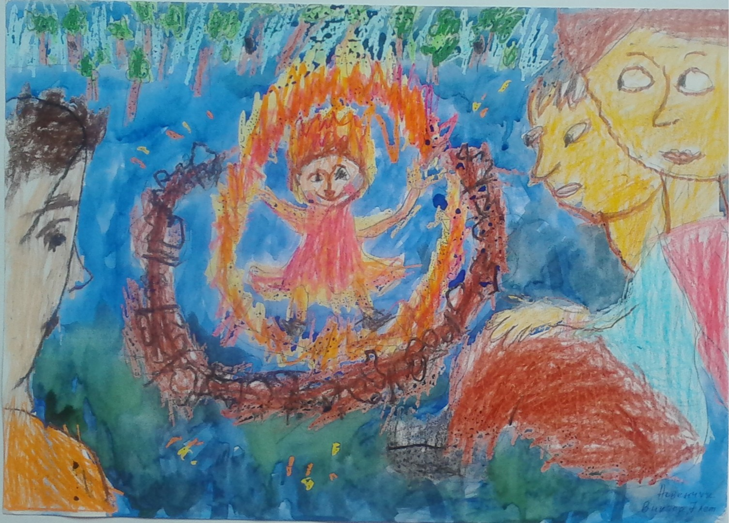 Снегурочка прыгает через костер