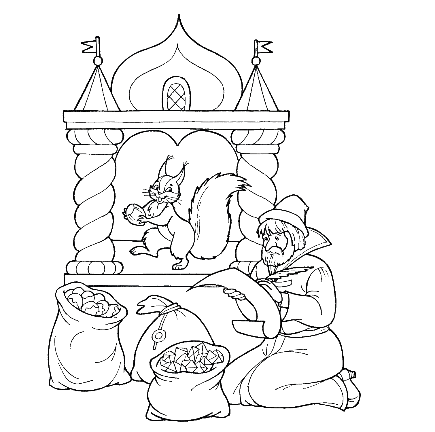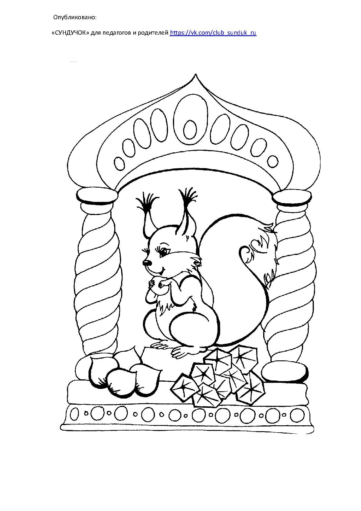 Сказка о царе Салтане раскраска белка