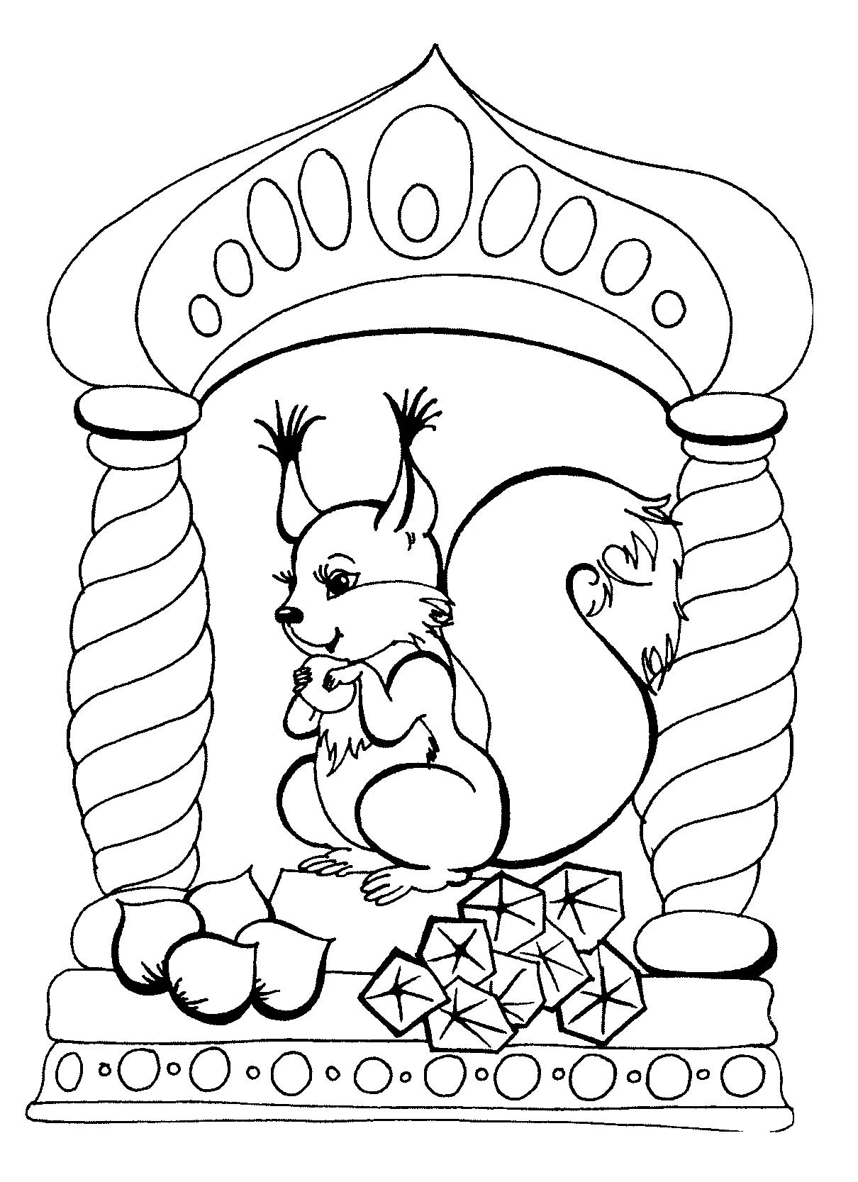 Белка из сказки о царе Салтане раскраска