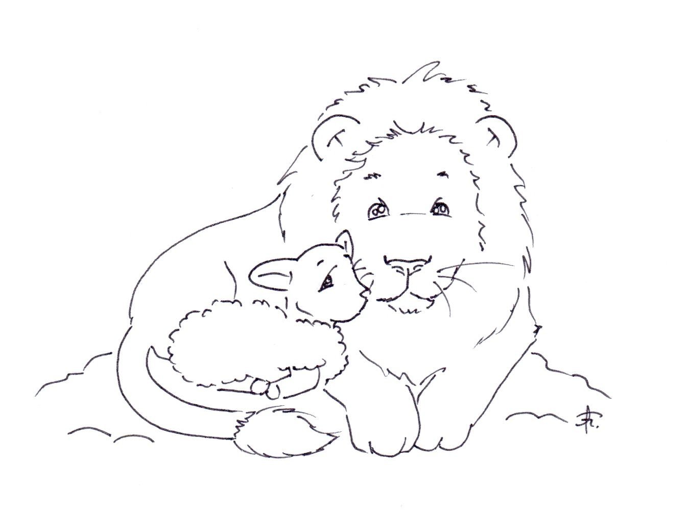 Лев и Львенок раскраска для детей