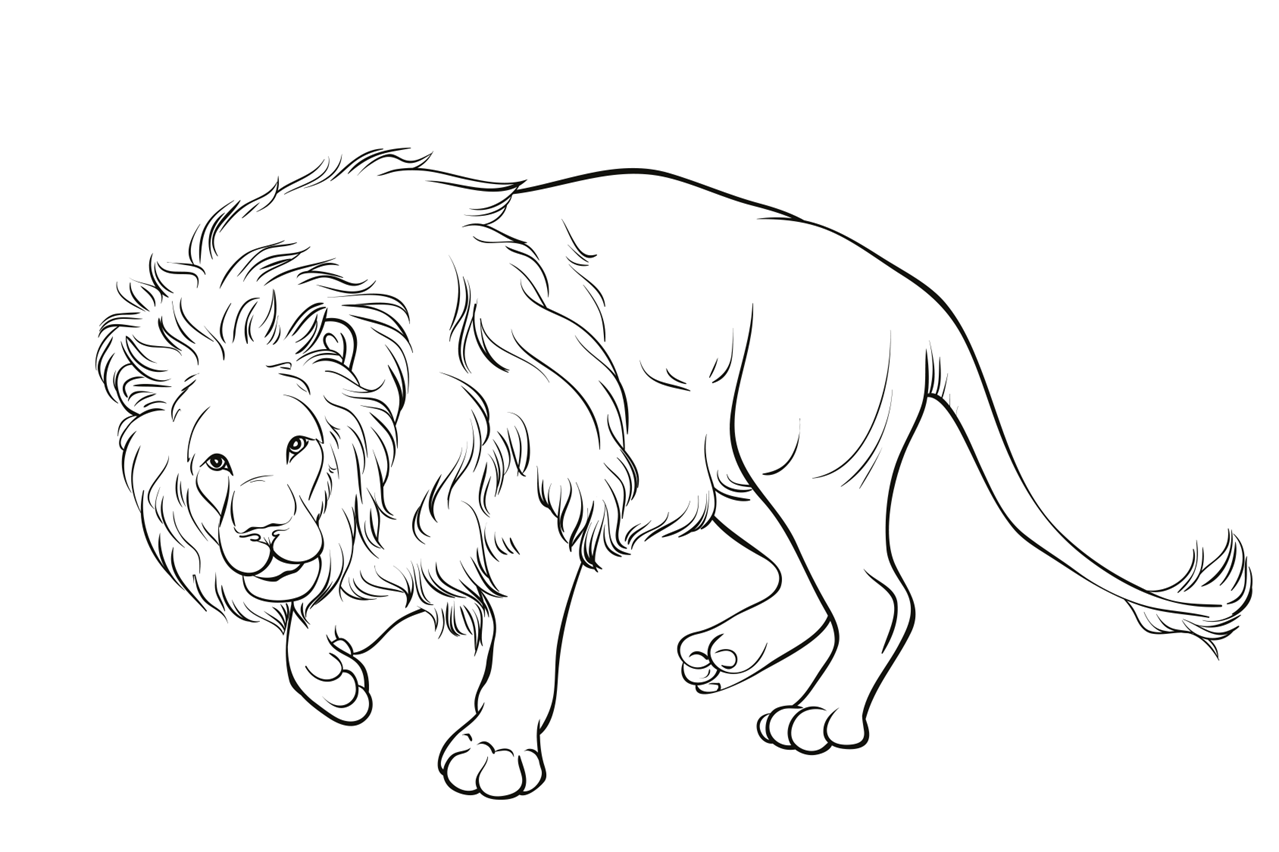 Лев рисунок для детей раскраска