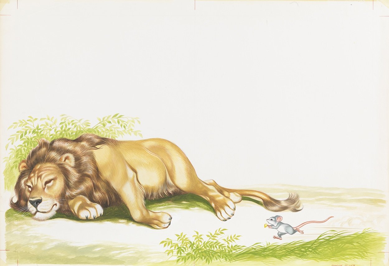 Лев и мышь раскраска