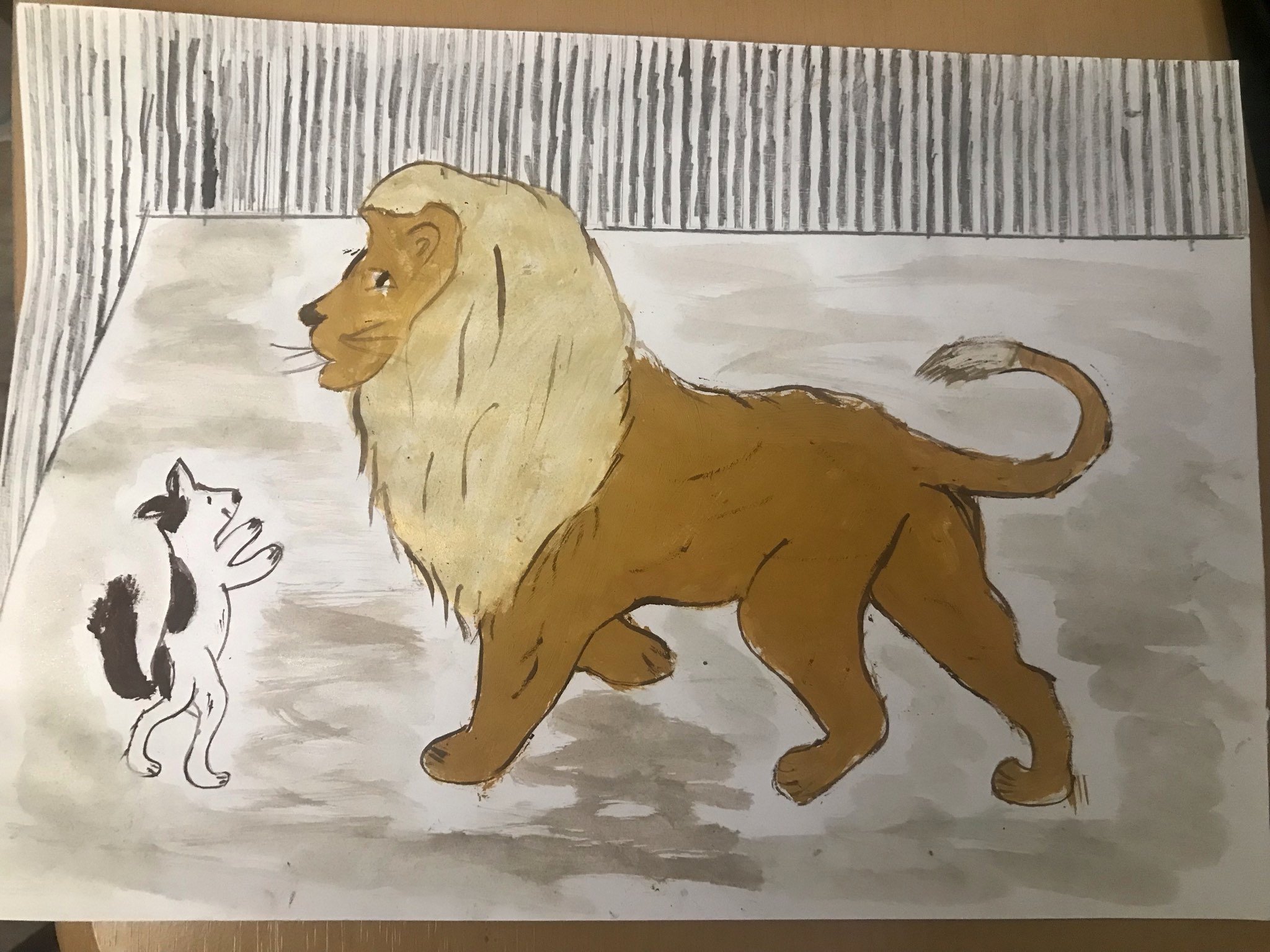Лев и собачка рисунок карандашом