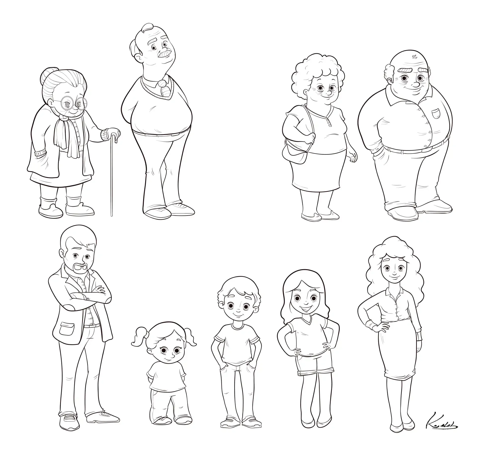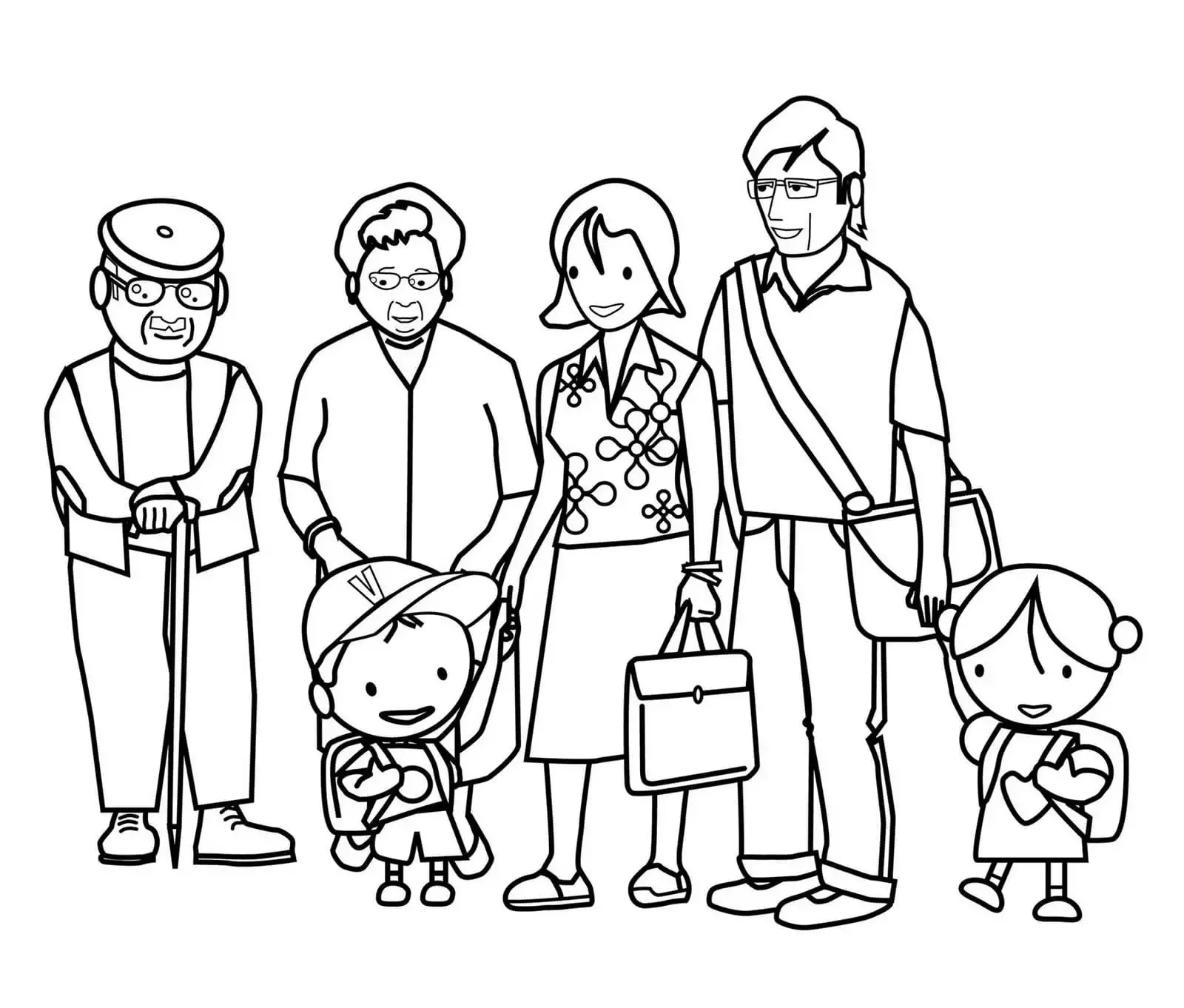 Раскраска семья с бабушкой и дедушкой