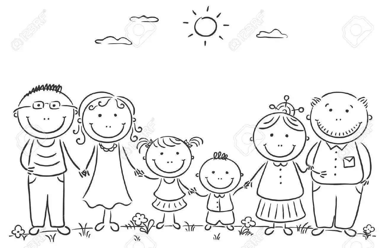Семья рисунок чб