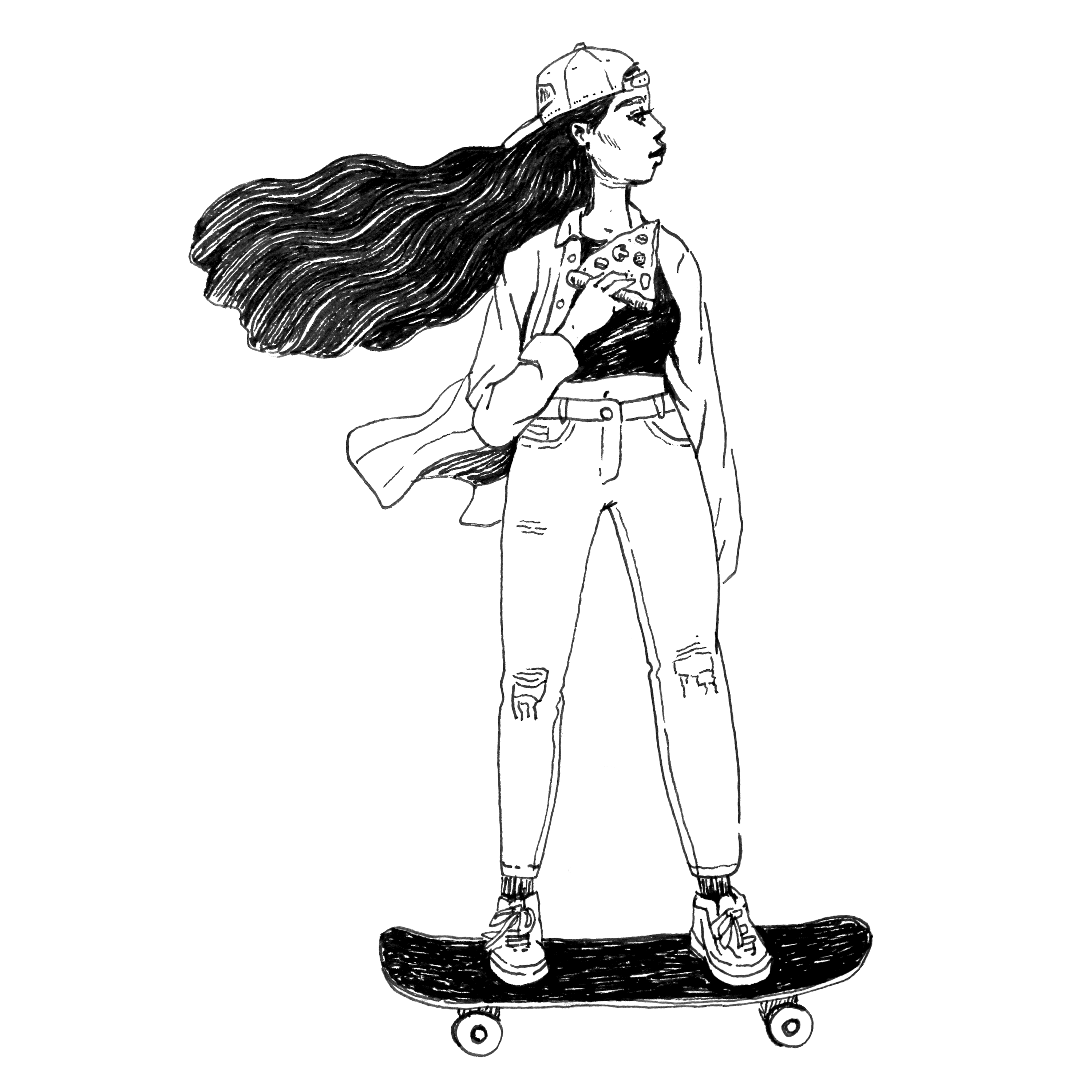 Раскраска девочка на скейтборде