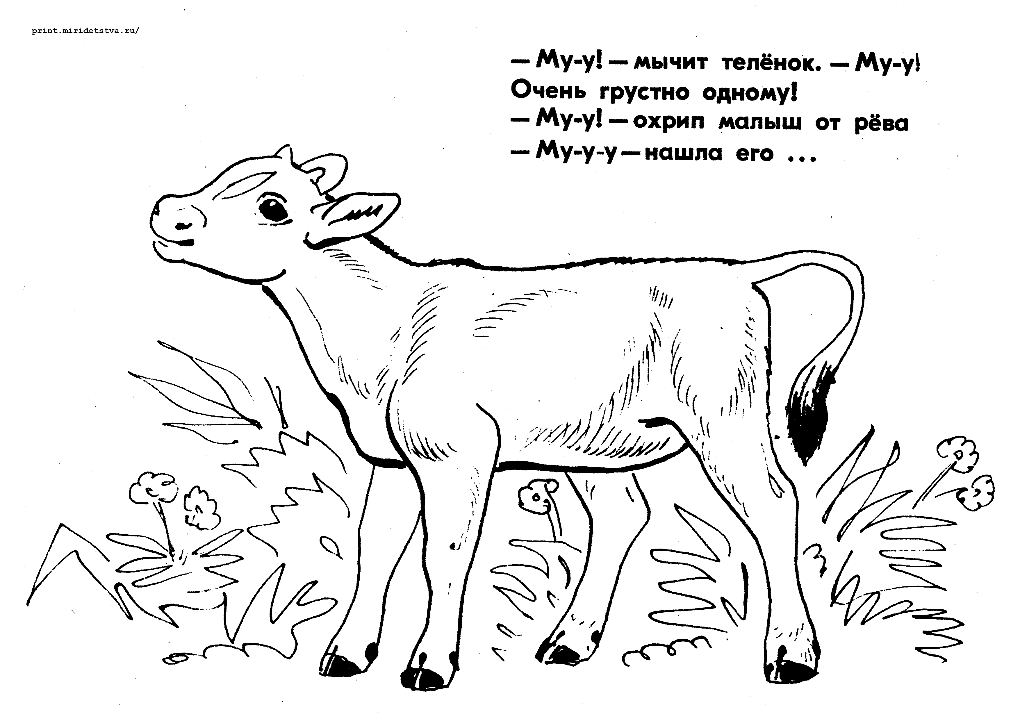 Раскраска теленок для детей 6-7 лет