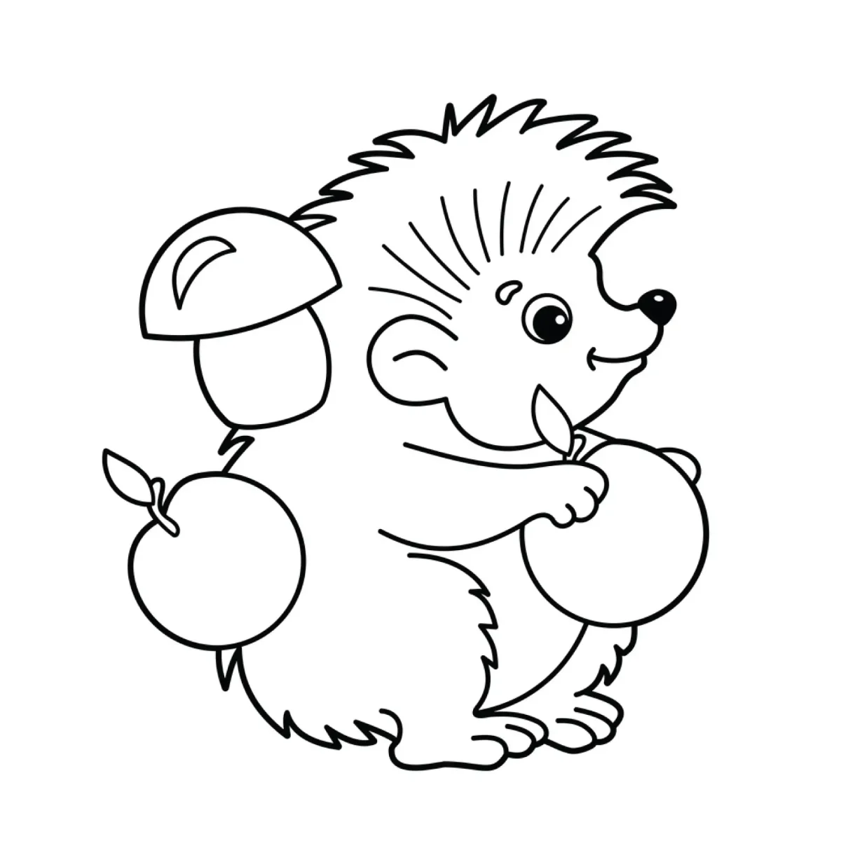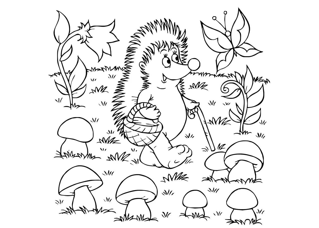 Ежик с грибами раскраска
