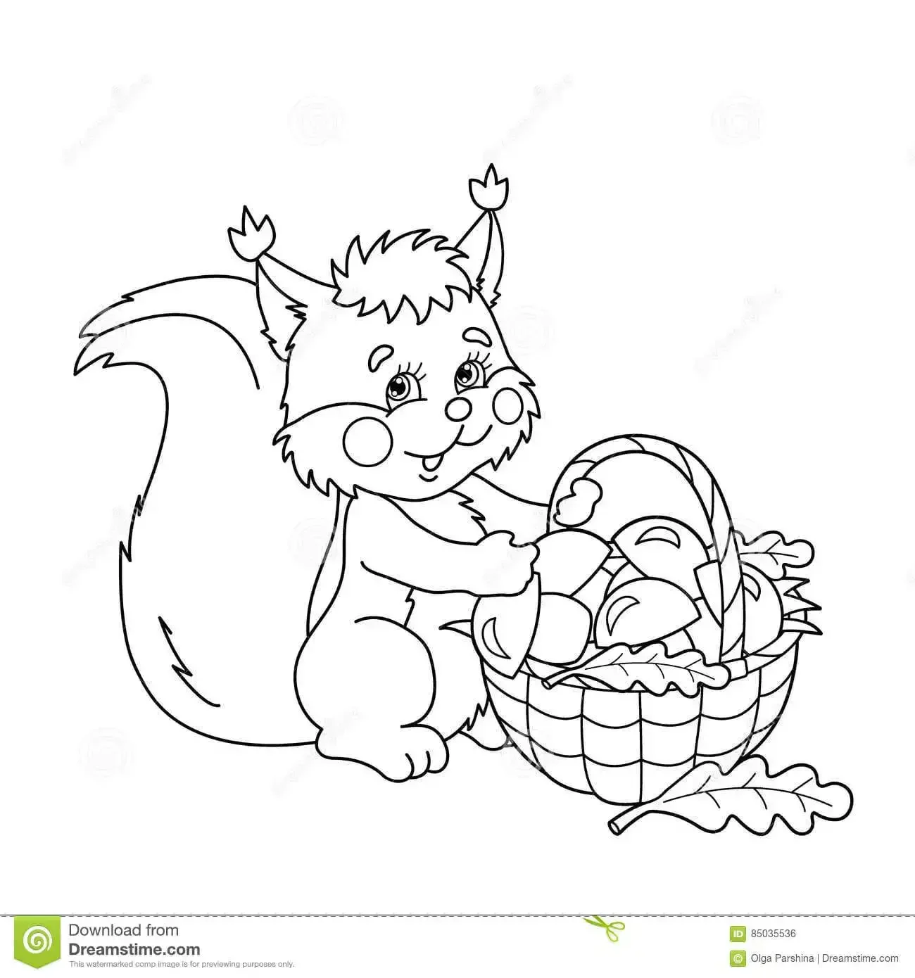 Белка с корзиной раскраска