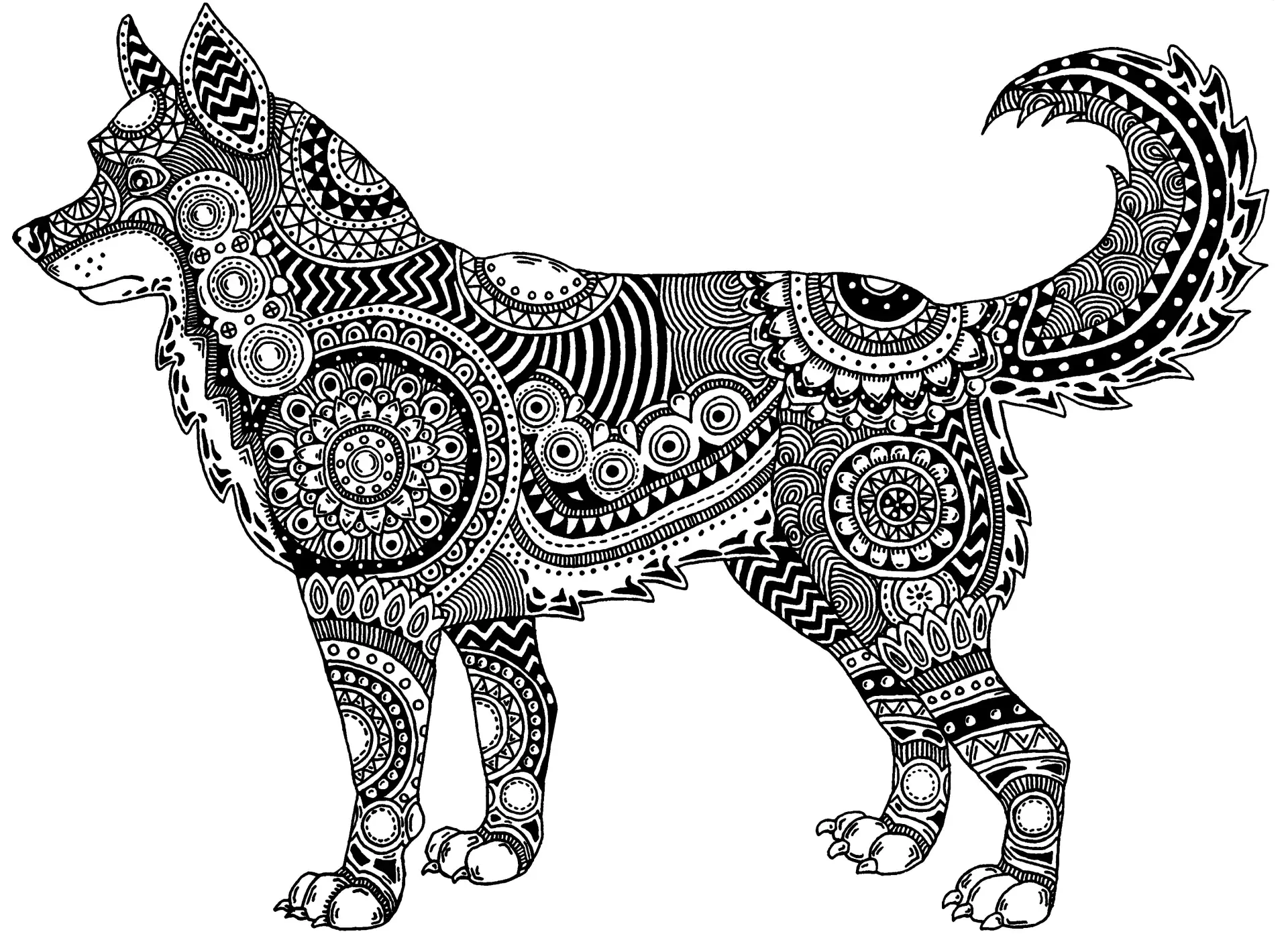 Волк дудл Зентангл