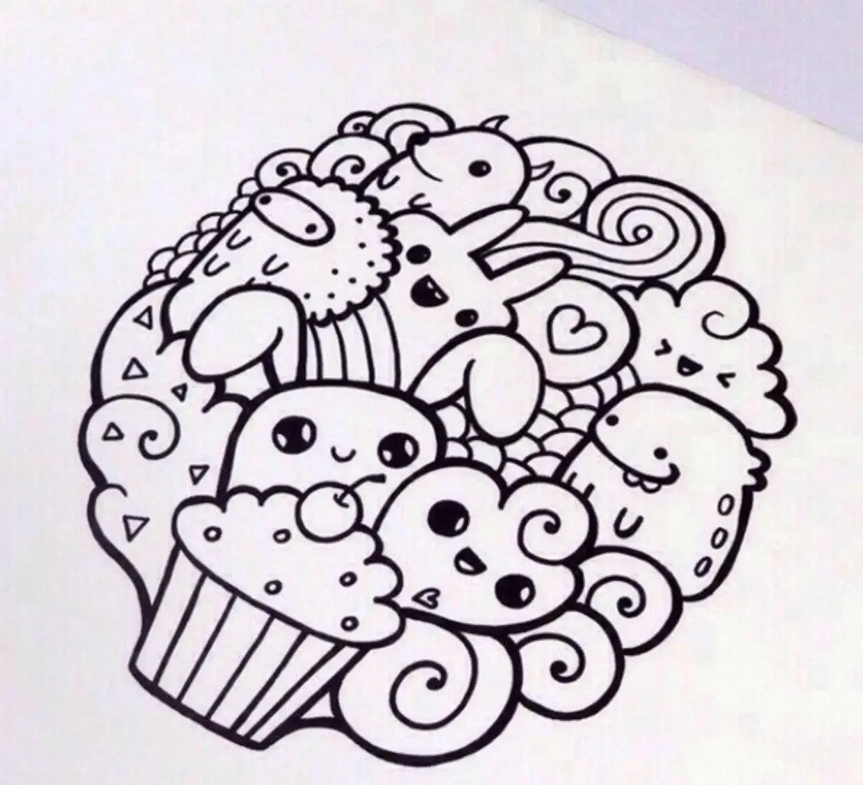 Кавайные раскраски дудлинг