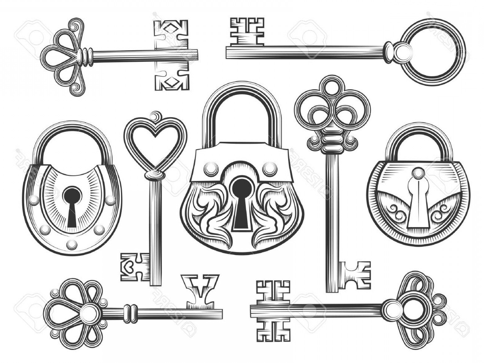 Изображение замков и ключиков рисунок