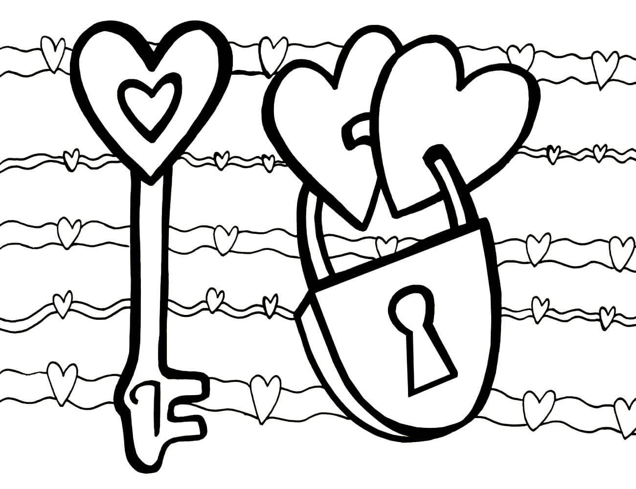 Раскраска сердечко замочек