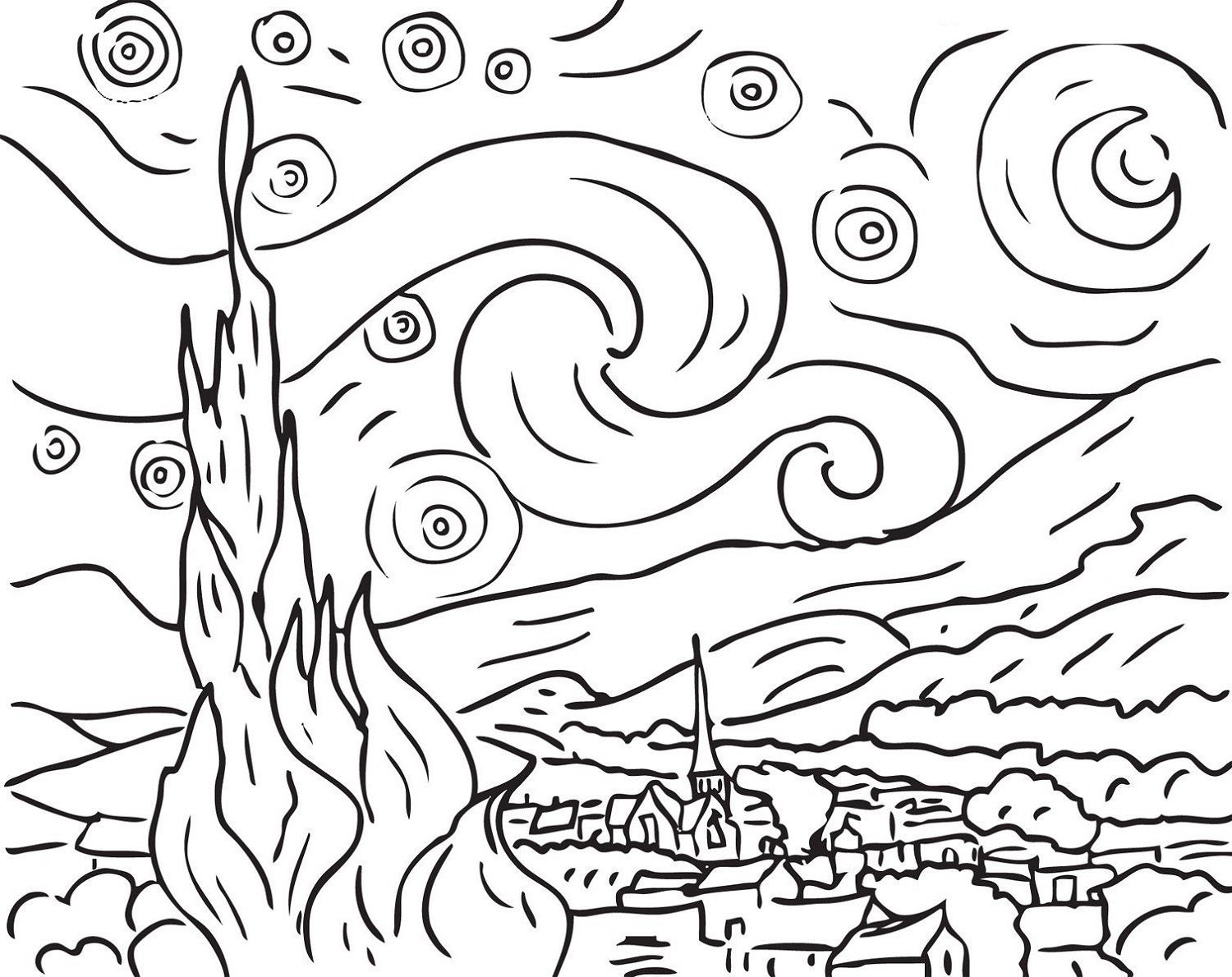 Звездная ночь Ван Гога раскраска