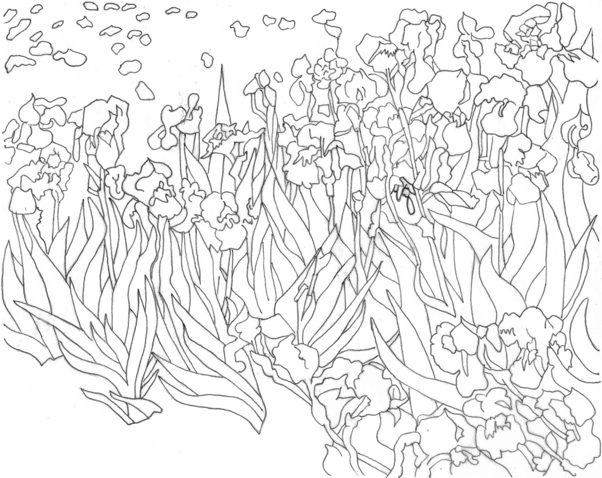 Ван Гог ирисы черно белый