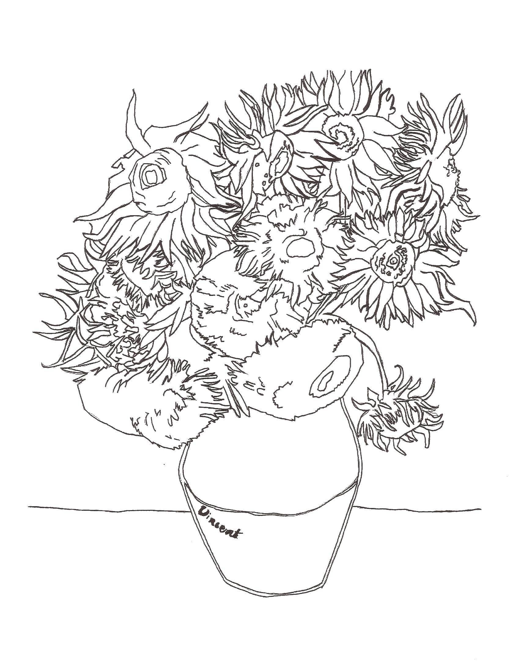 Ван Гог Подсолнухи раскраска