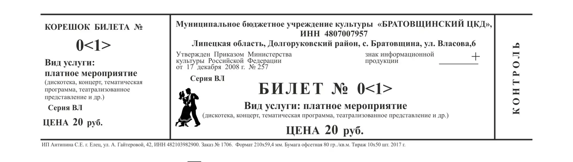 Форма билета в театр