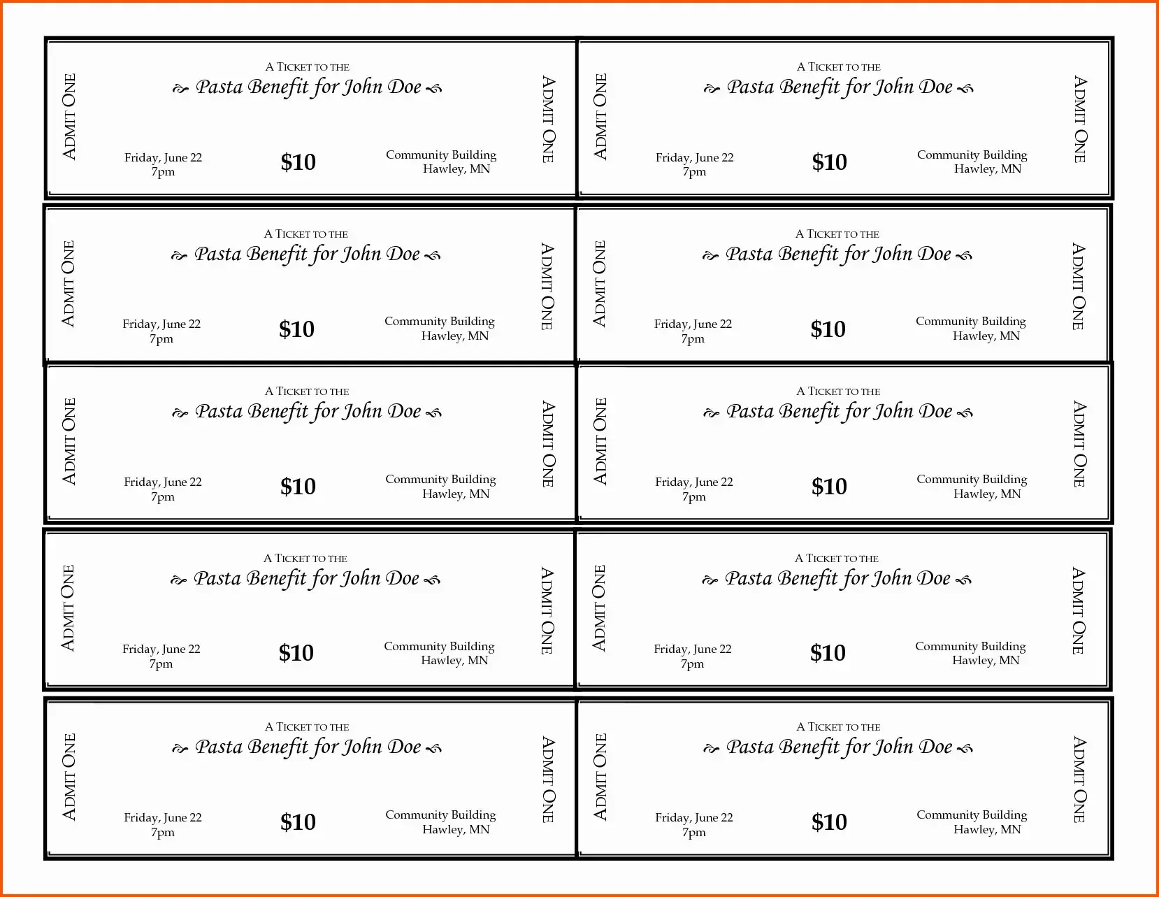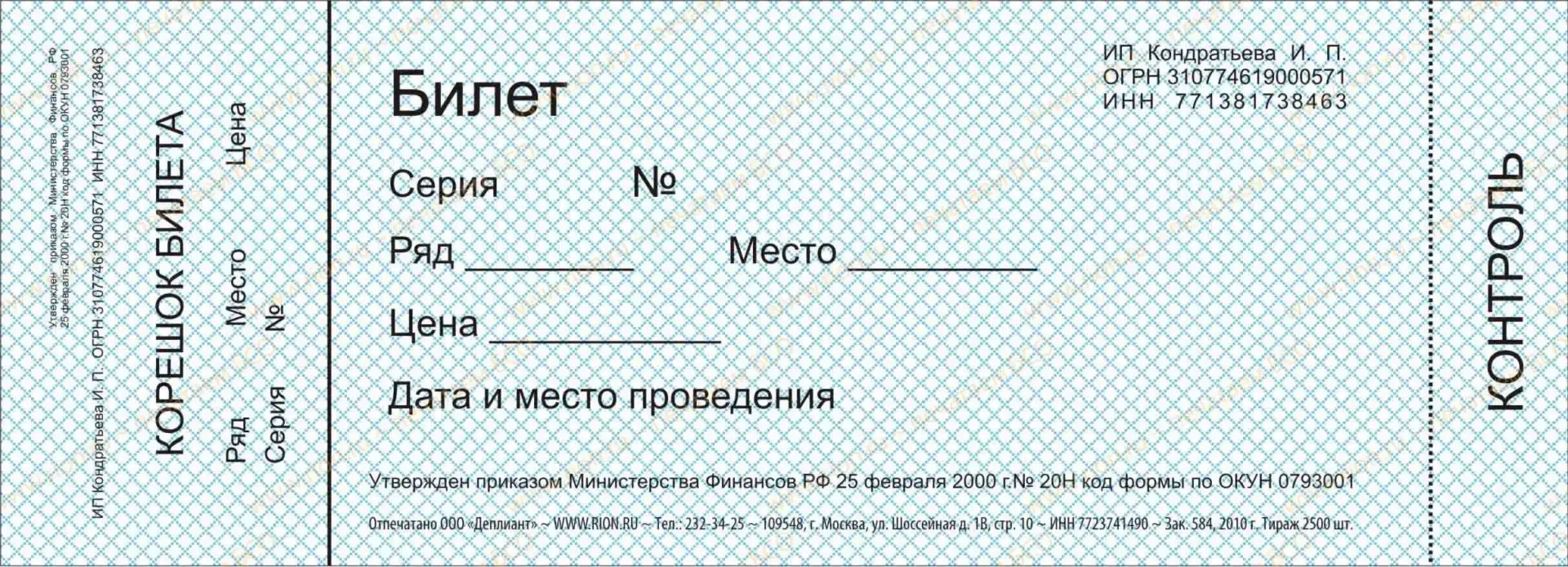 Билет шаблон для печати
