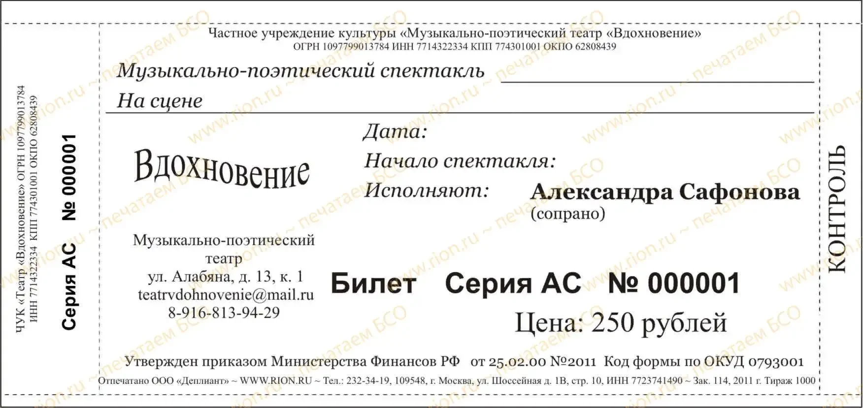Билет в театр образец