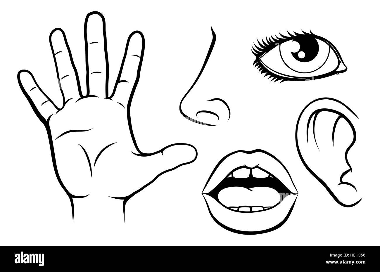 Части тела для детей в черно-белом