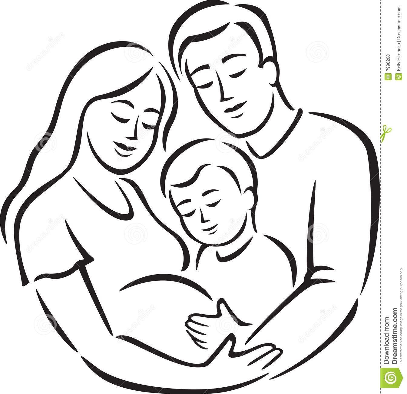 Иллюстрация черно белое мать с ребенком
