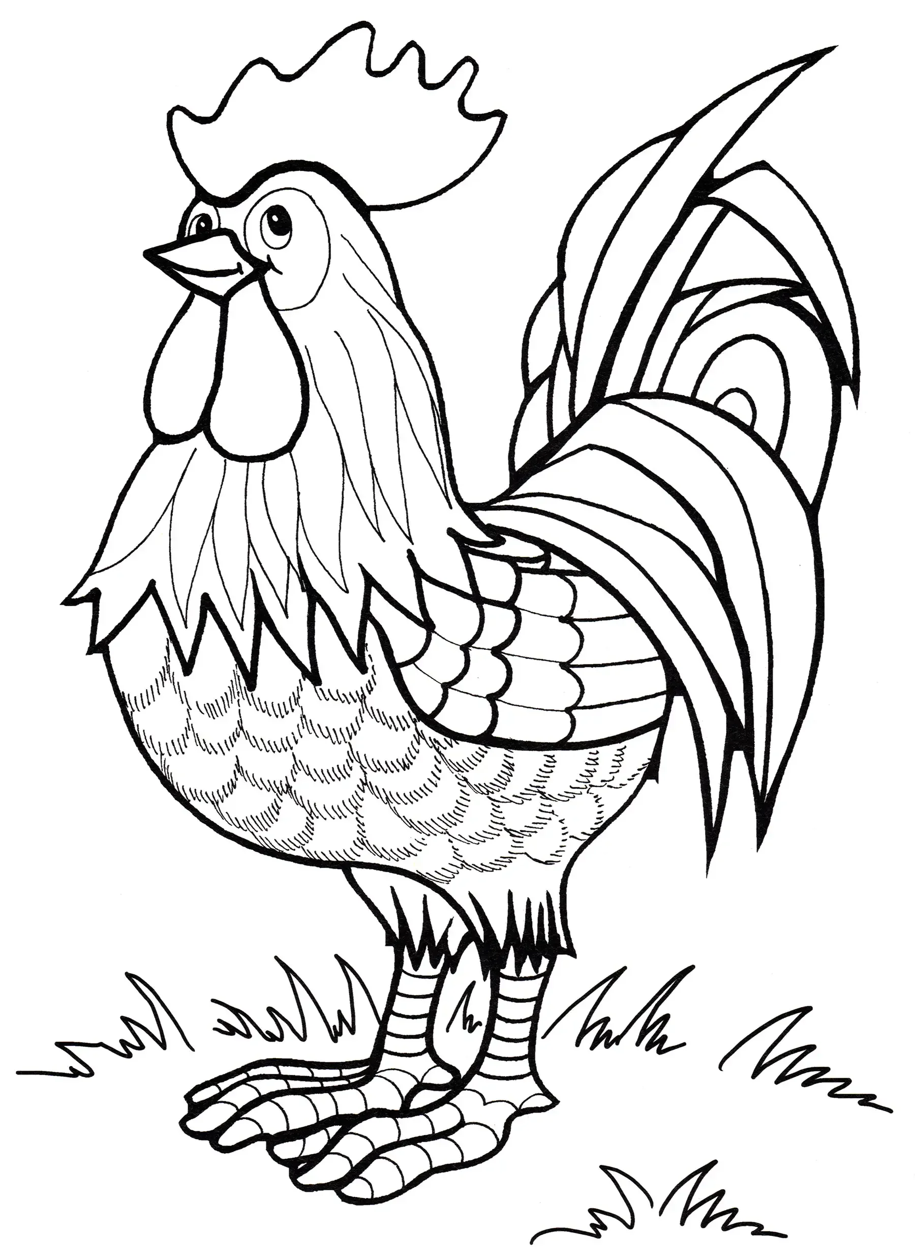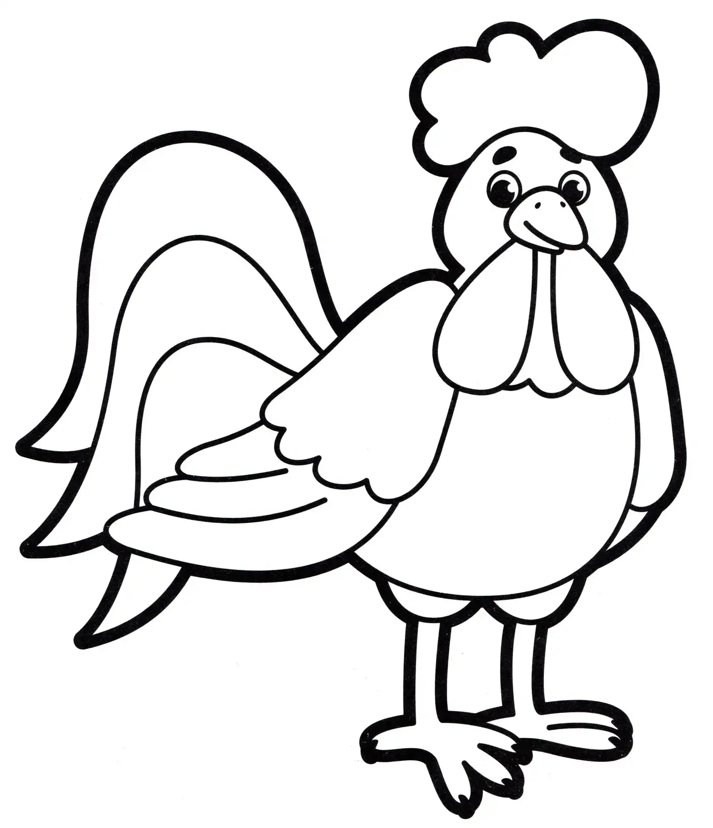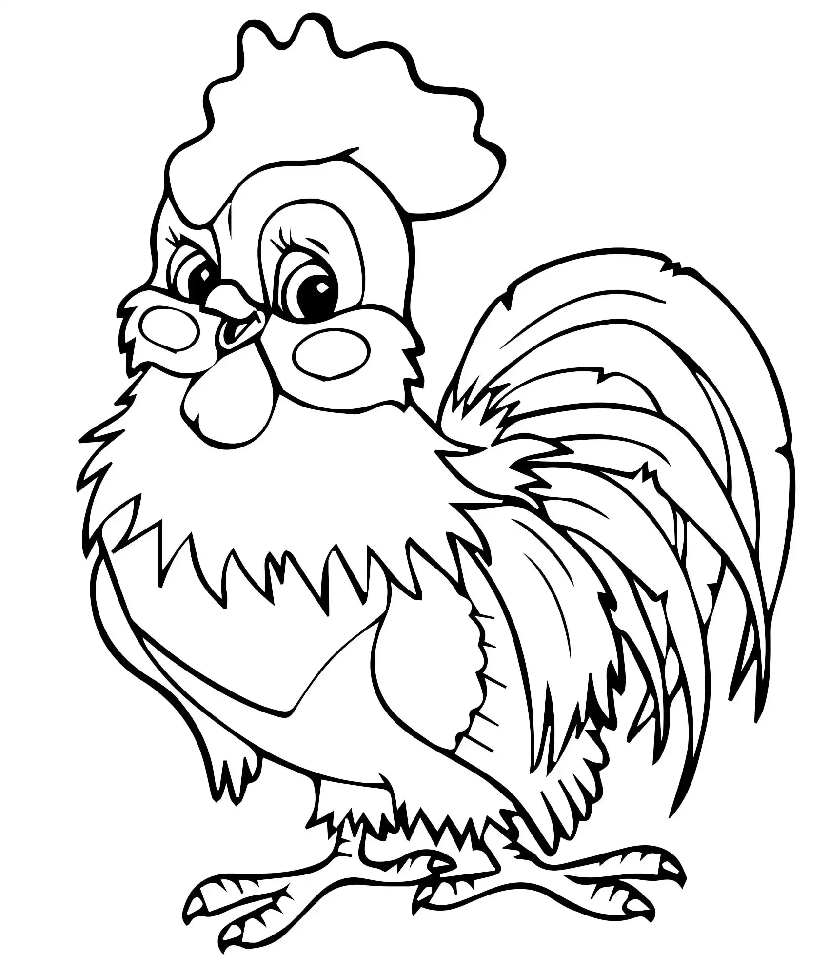 Петух мультяшный раскраска