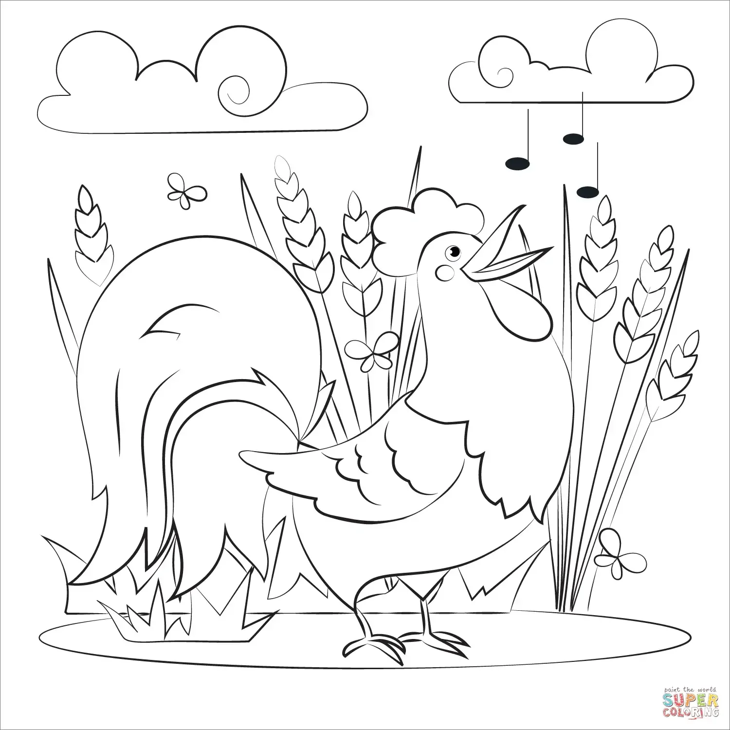 Петушок и бобовое зернышко раскраска для малышей