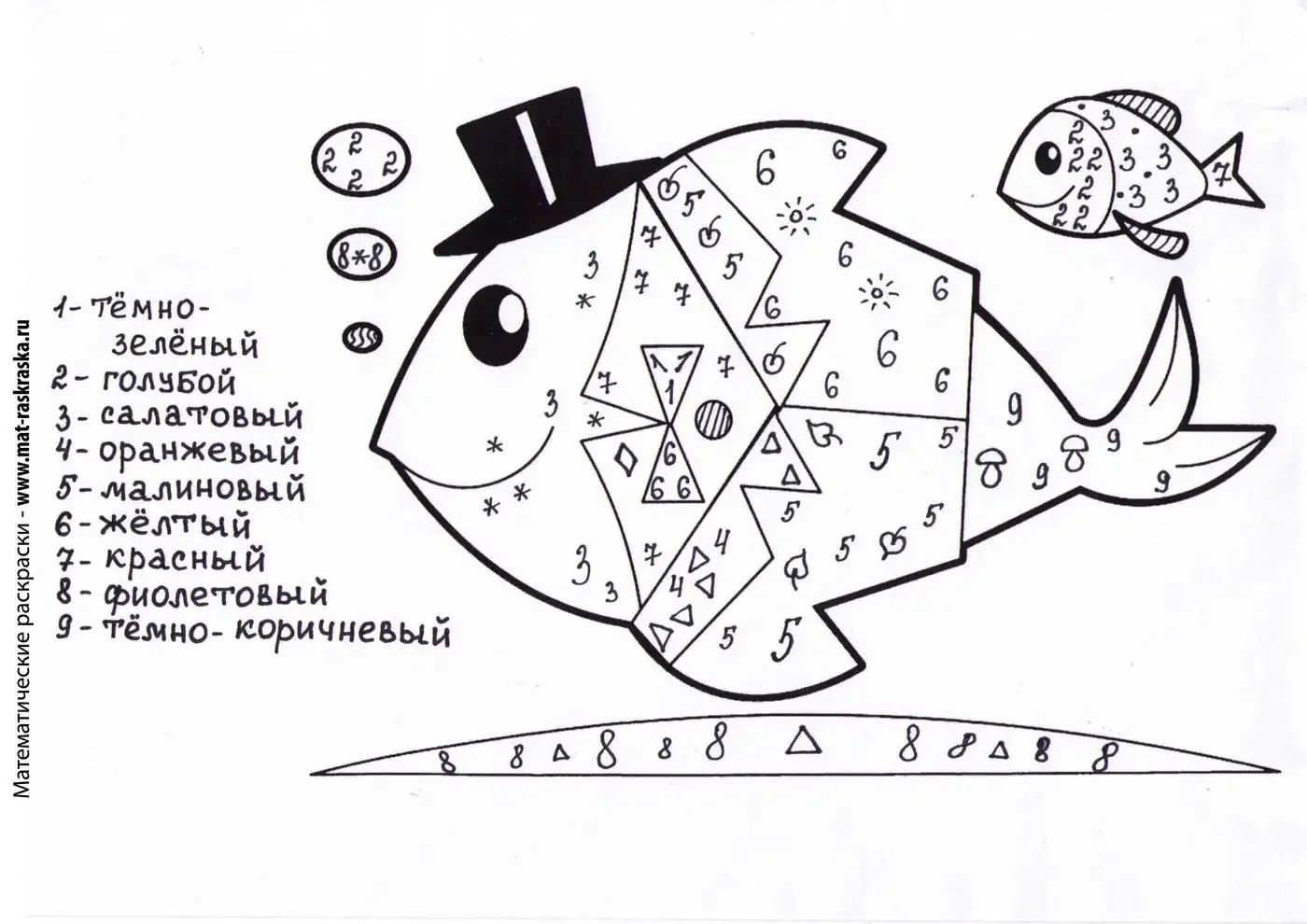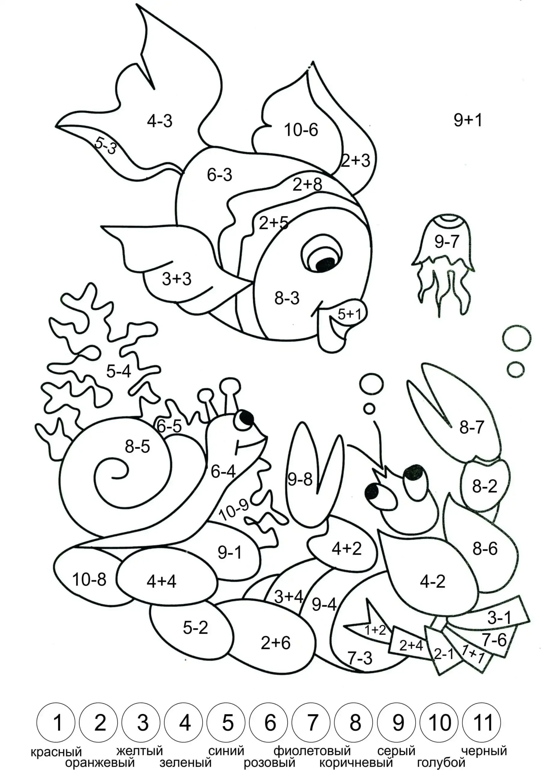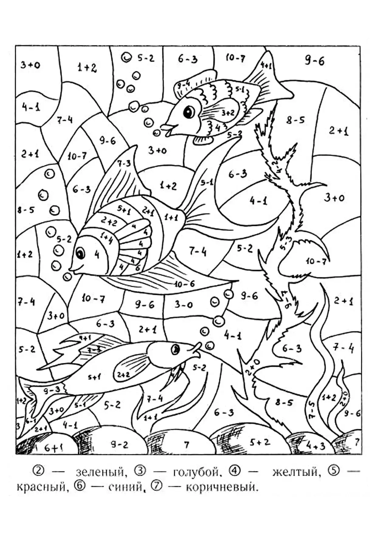 Математическая раскраска рыбки для детей