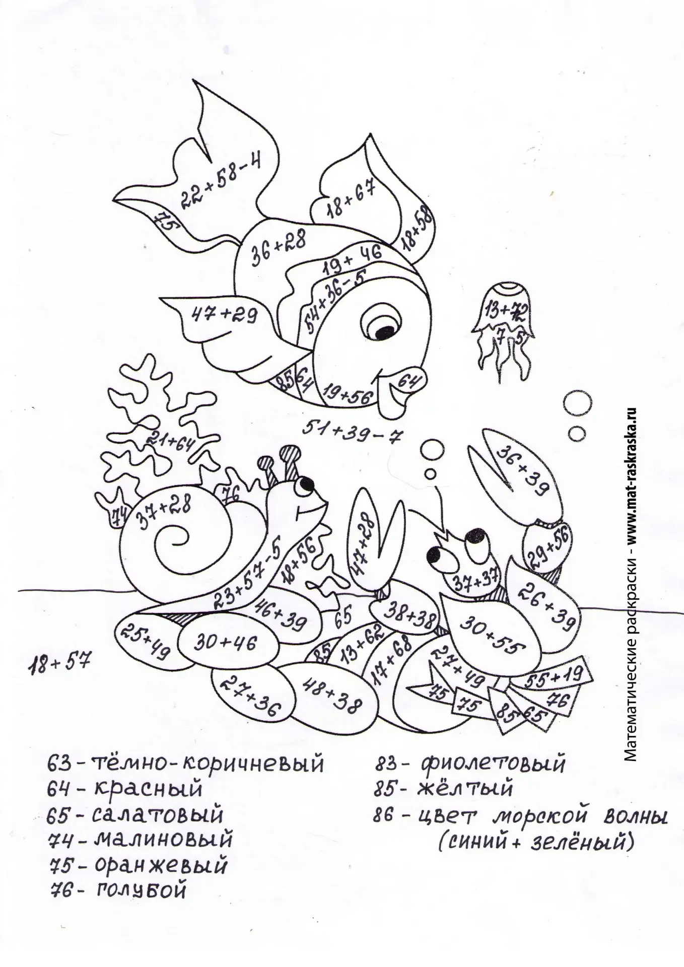 Математические раскраски морские обитатели