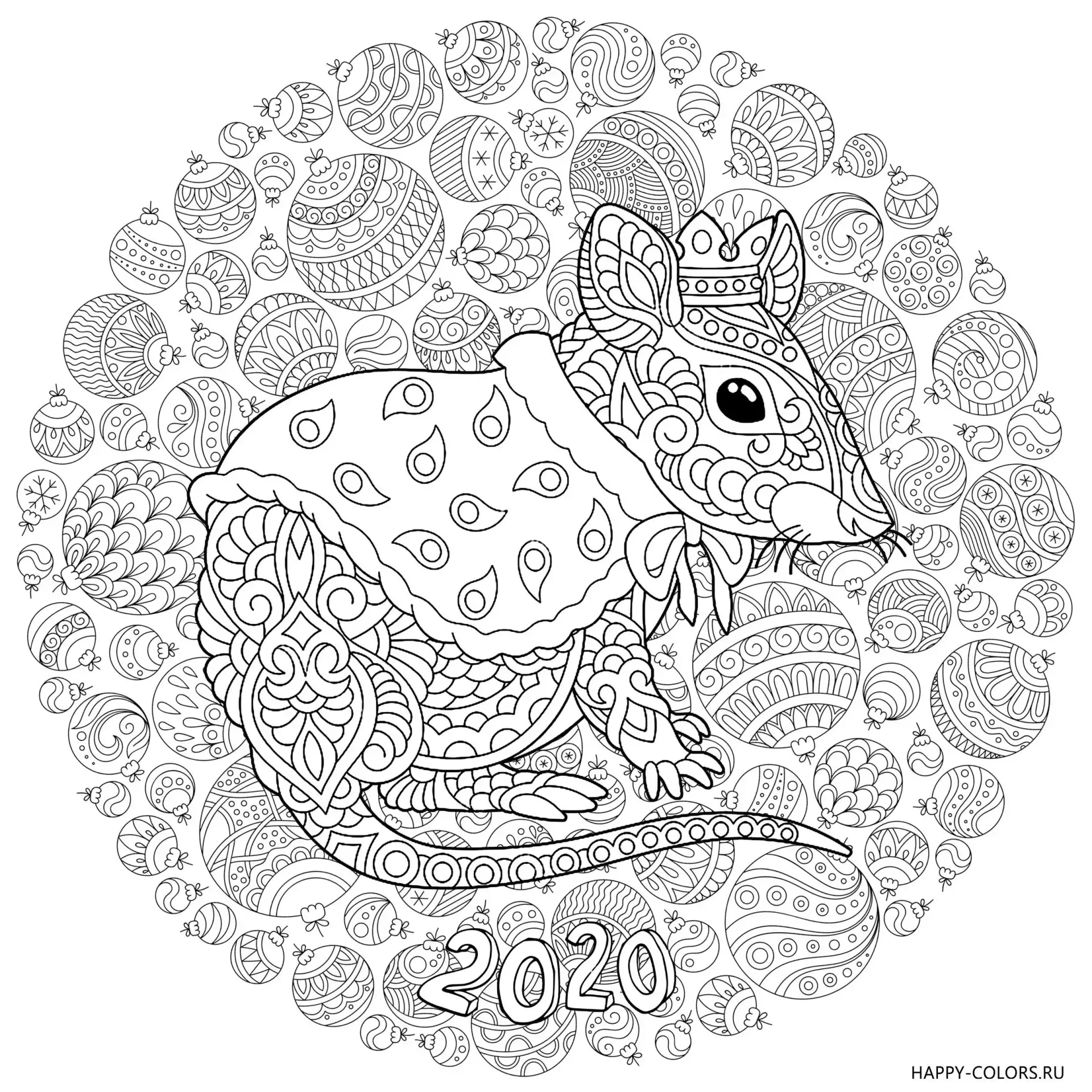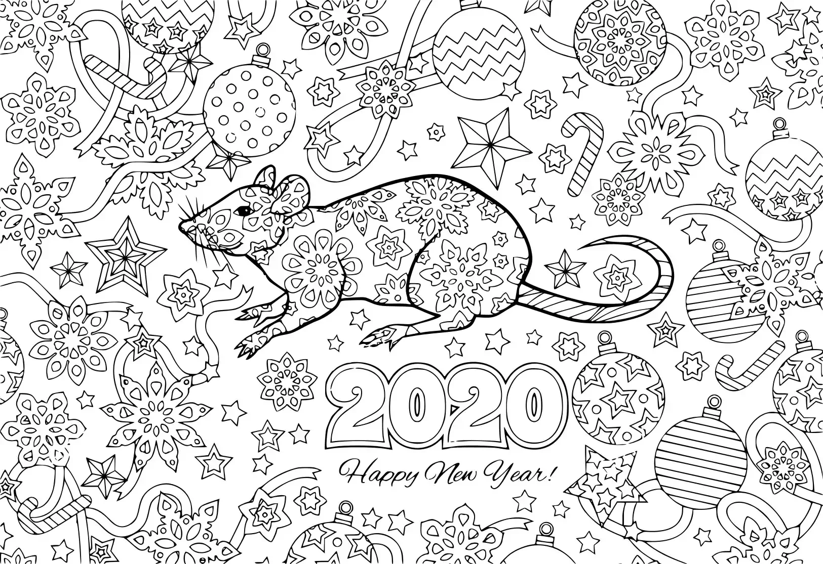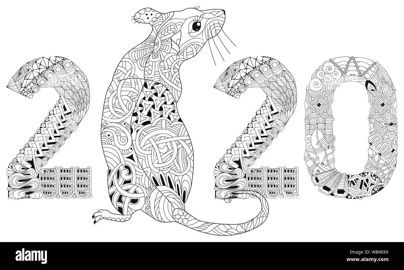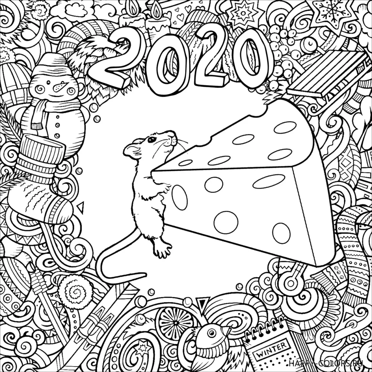 Крыса антистресс раскраска новый год