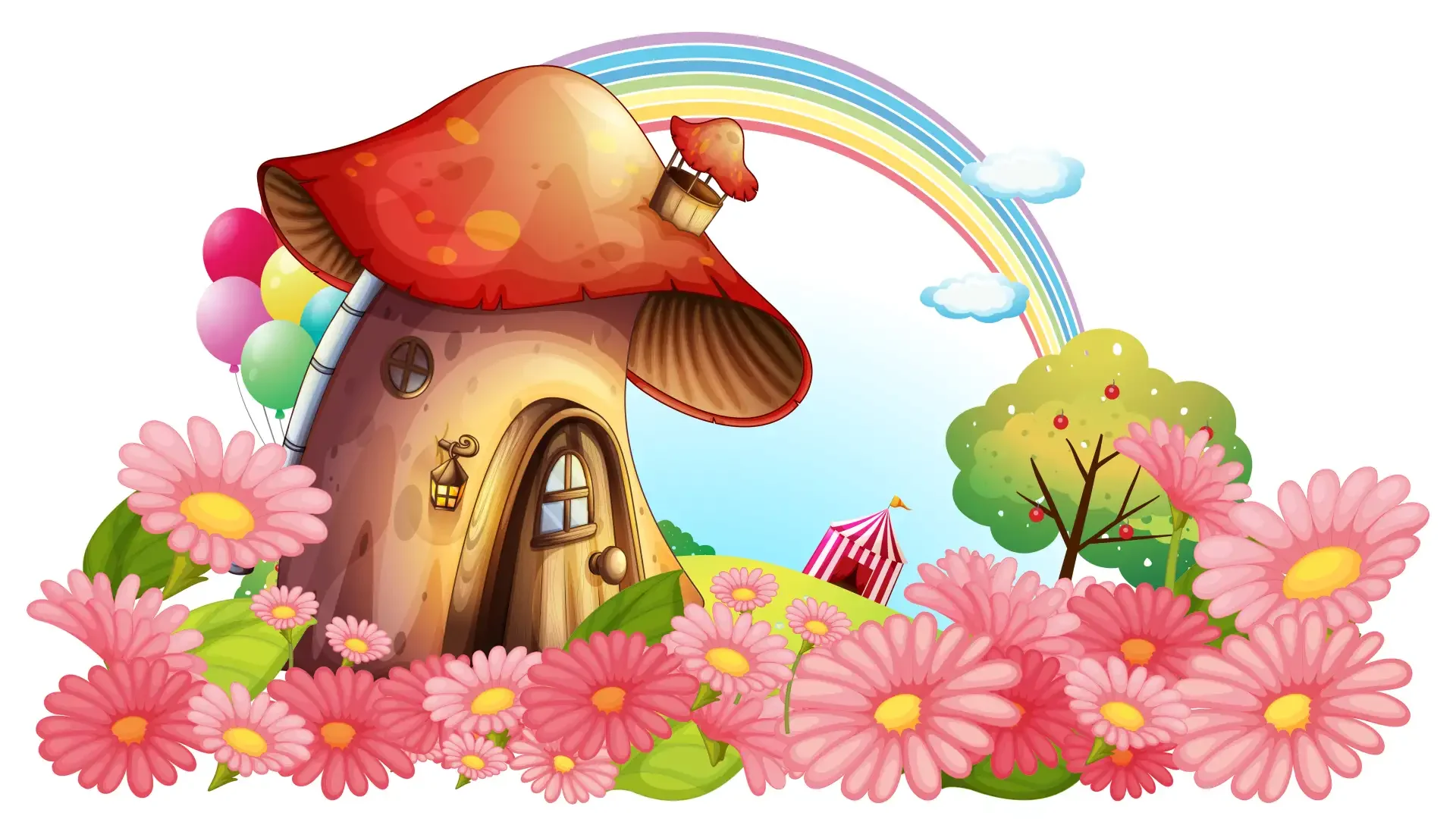 Домик мультяшный с цветами
