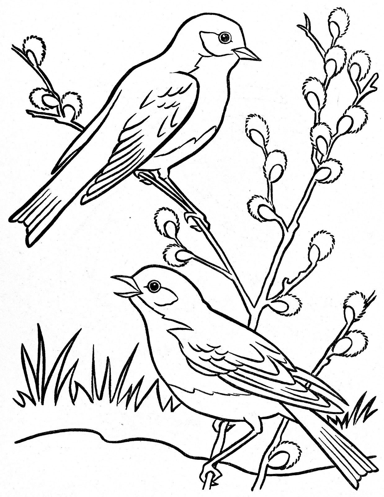 Весенние птицы раскраска