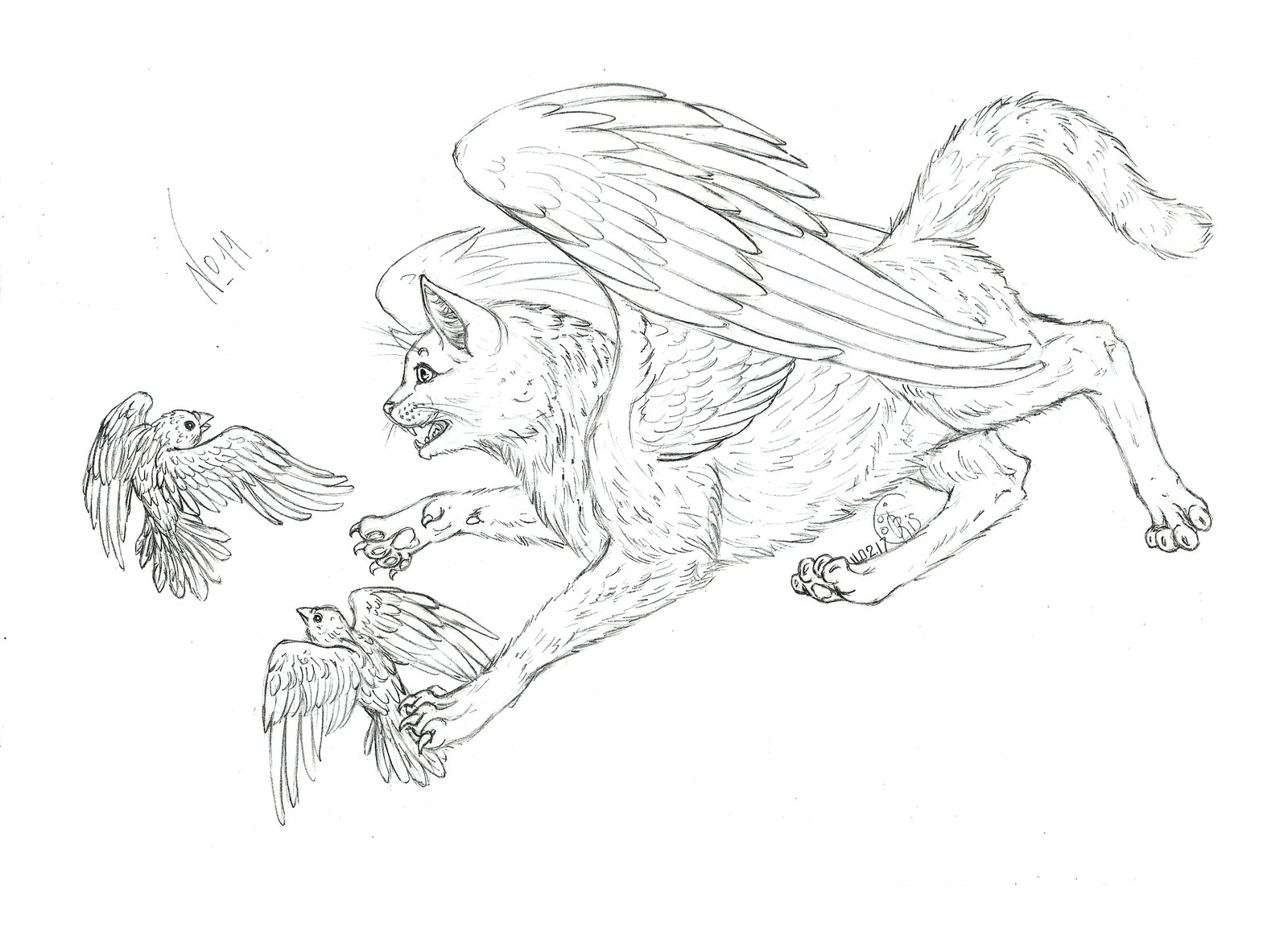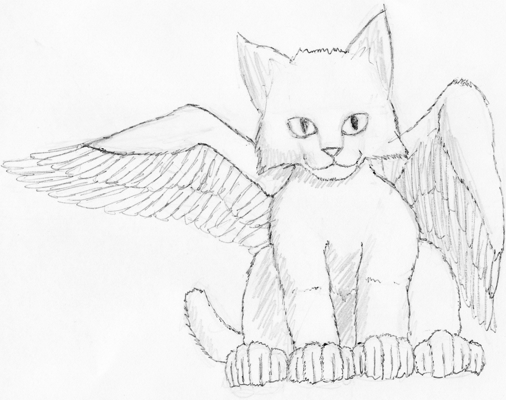 Кошка с крыльями для срисовки
