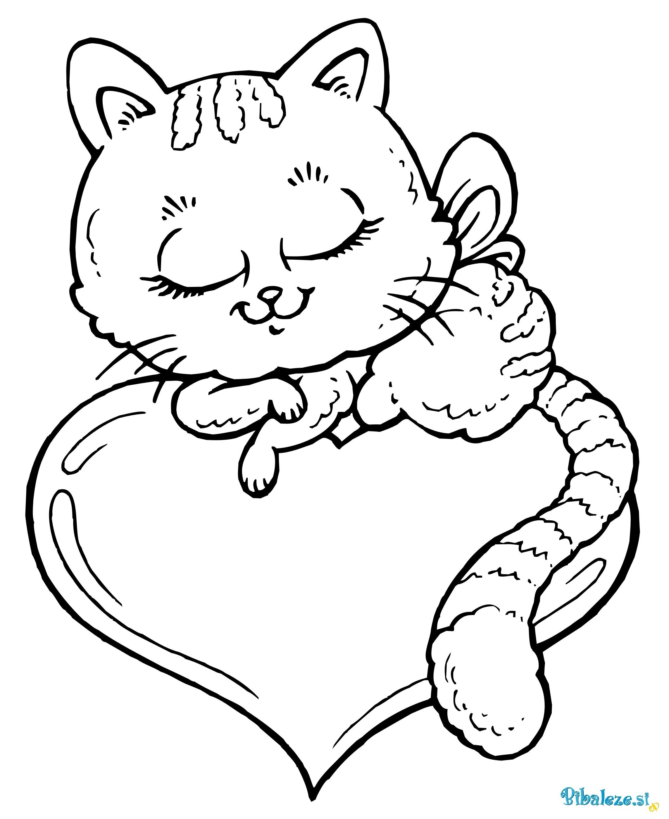 Раскраска котик с сердечком