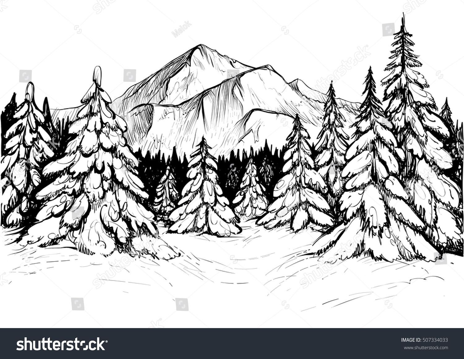 Горы елки карандашом