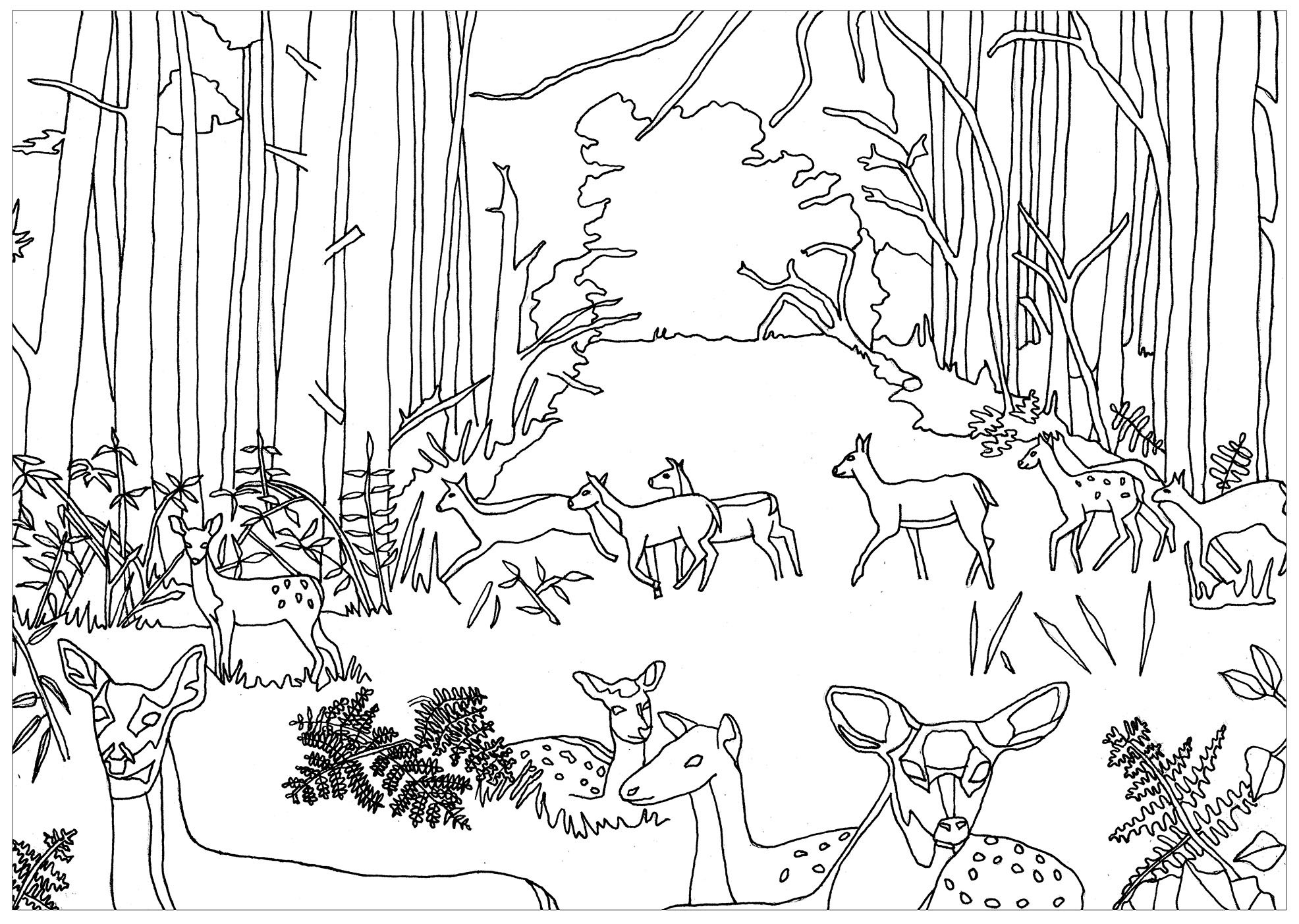 Раскраска олень в лесу