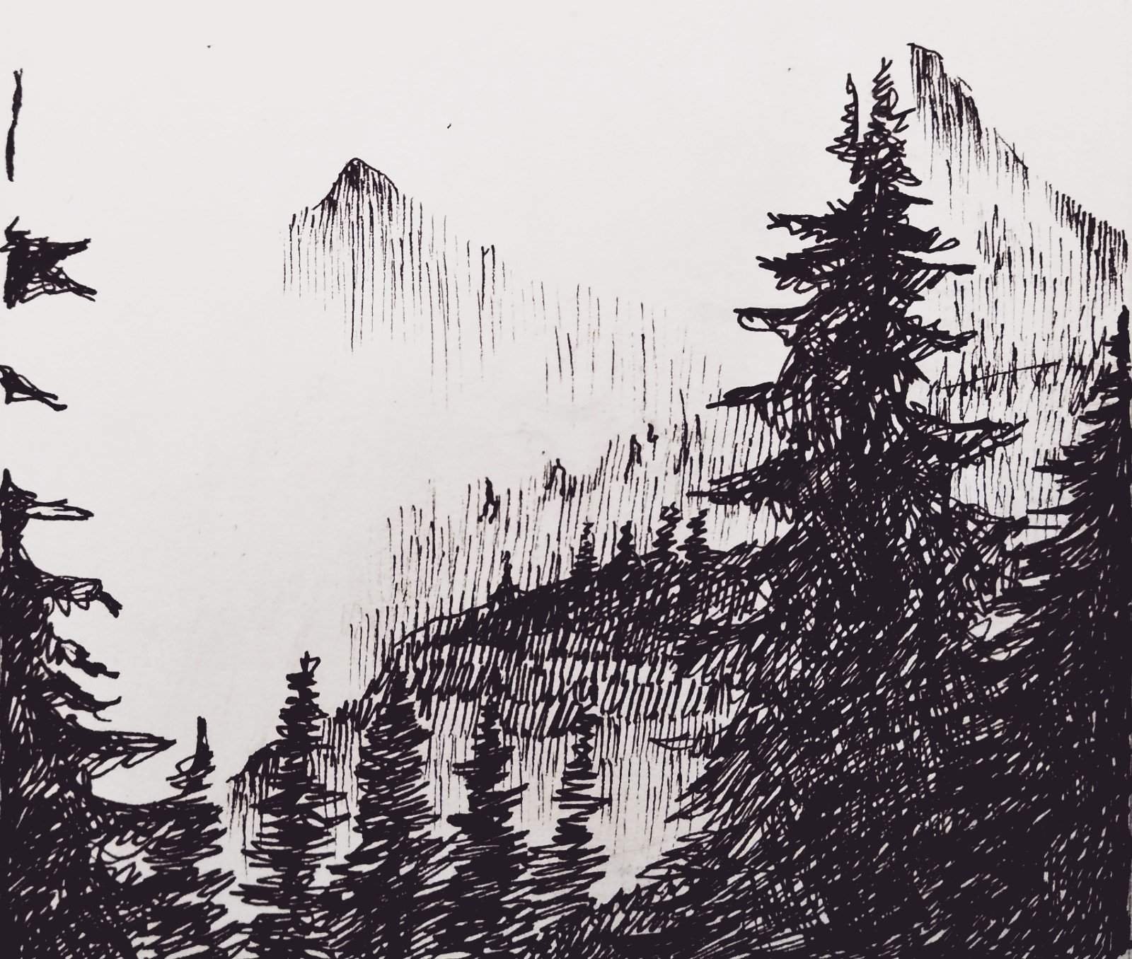 Пейзаж черной ручкой