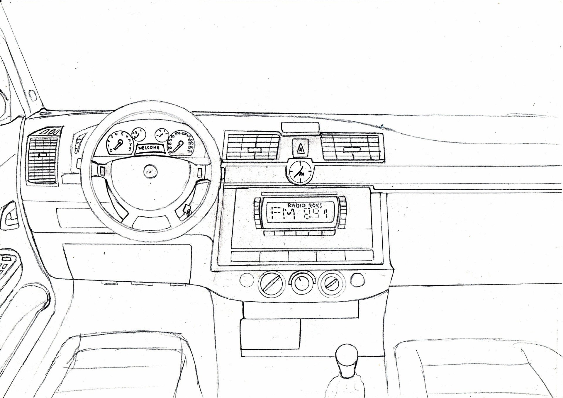 Салон машины карандашом