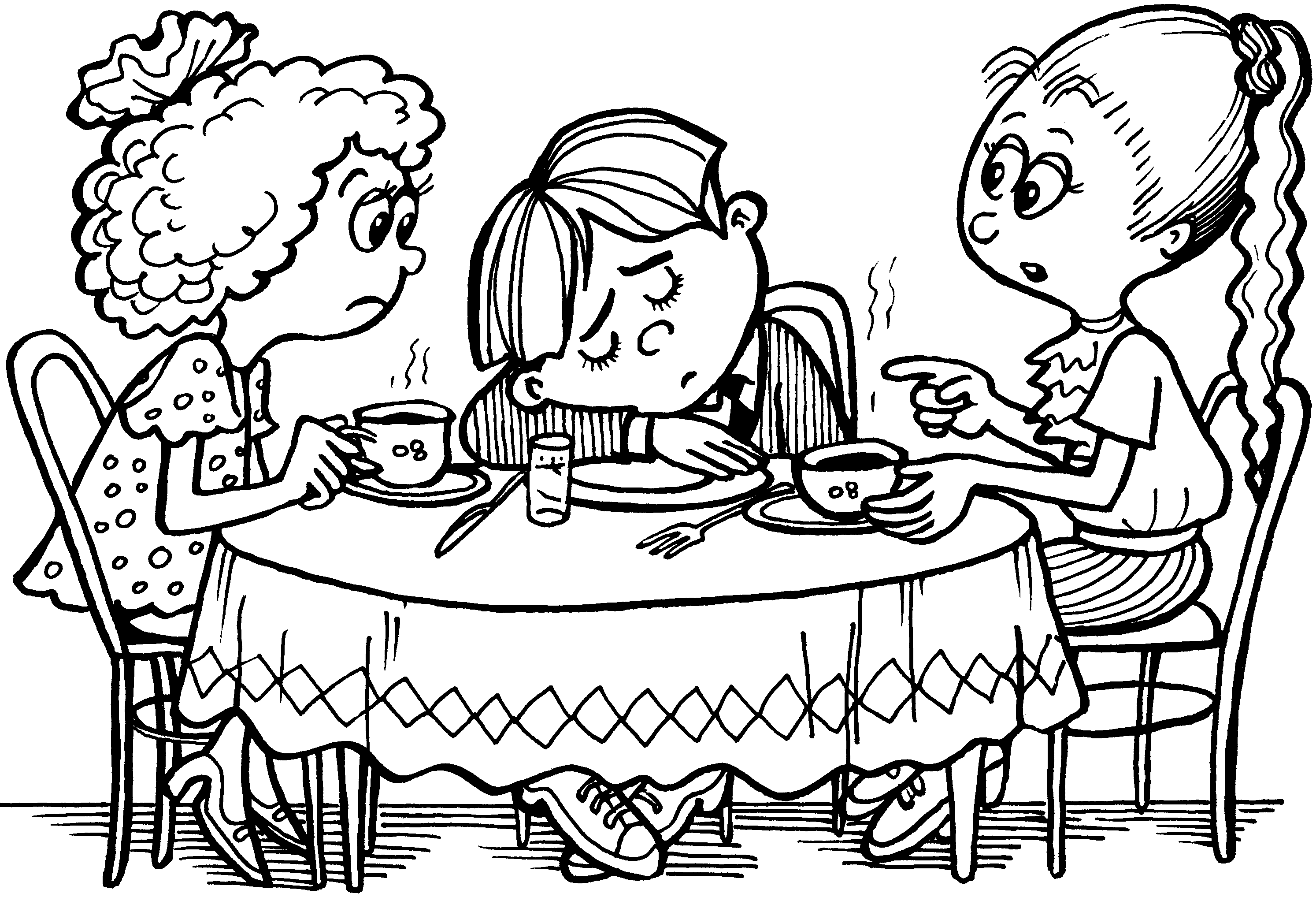 Раскраска дети в столовой