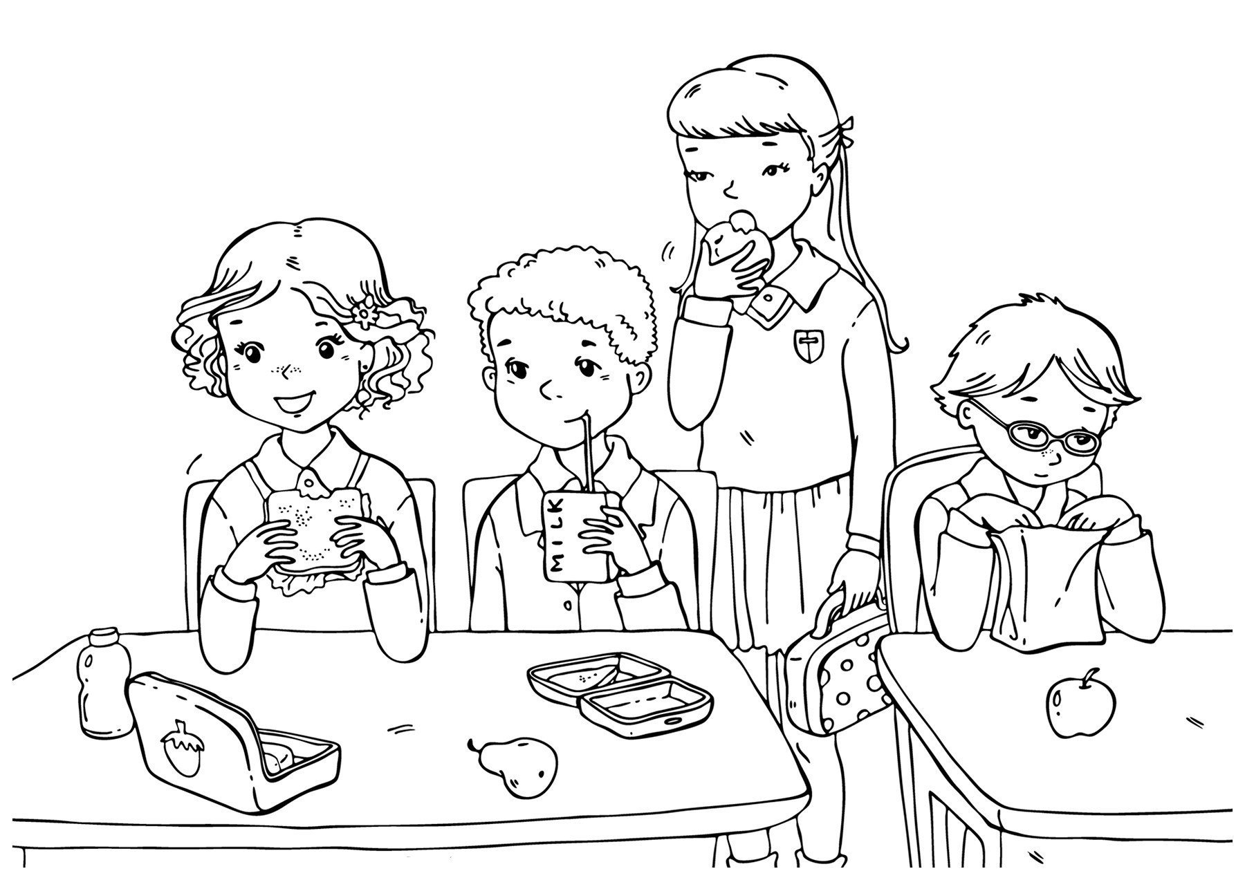 Обед в школе раскраска для детей