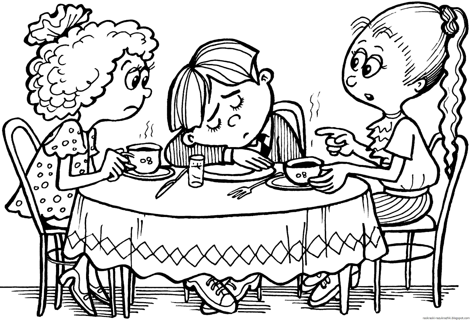 Раскраска дети в столовой