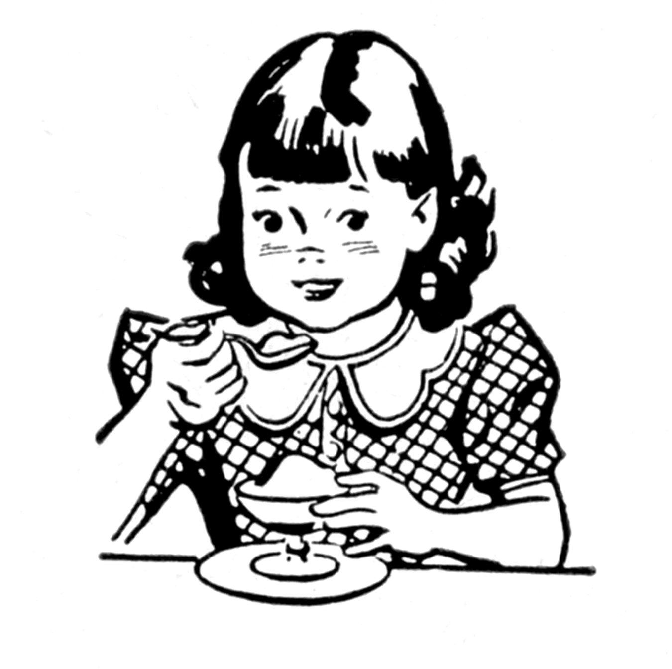 Раскраска обедающий ребенок