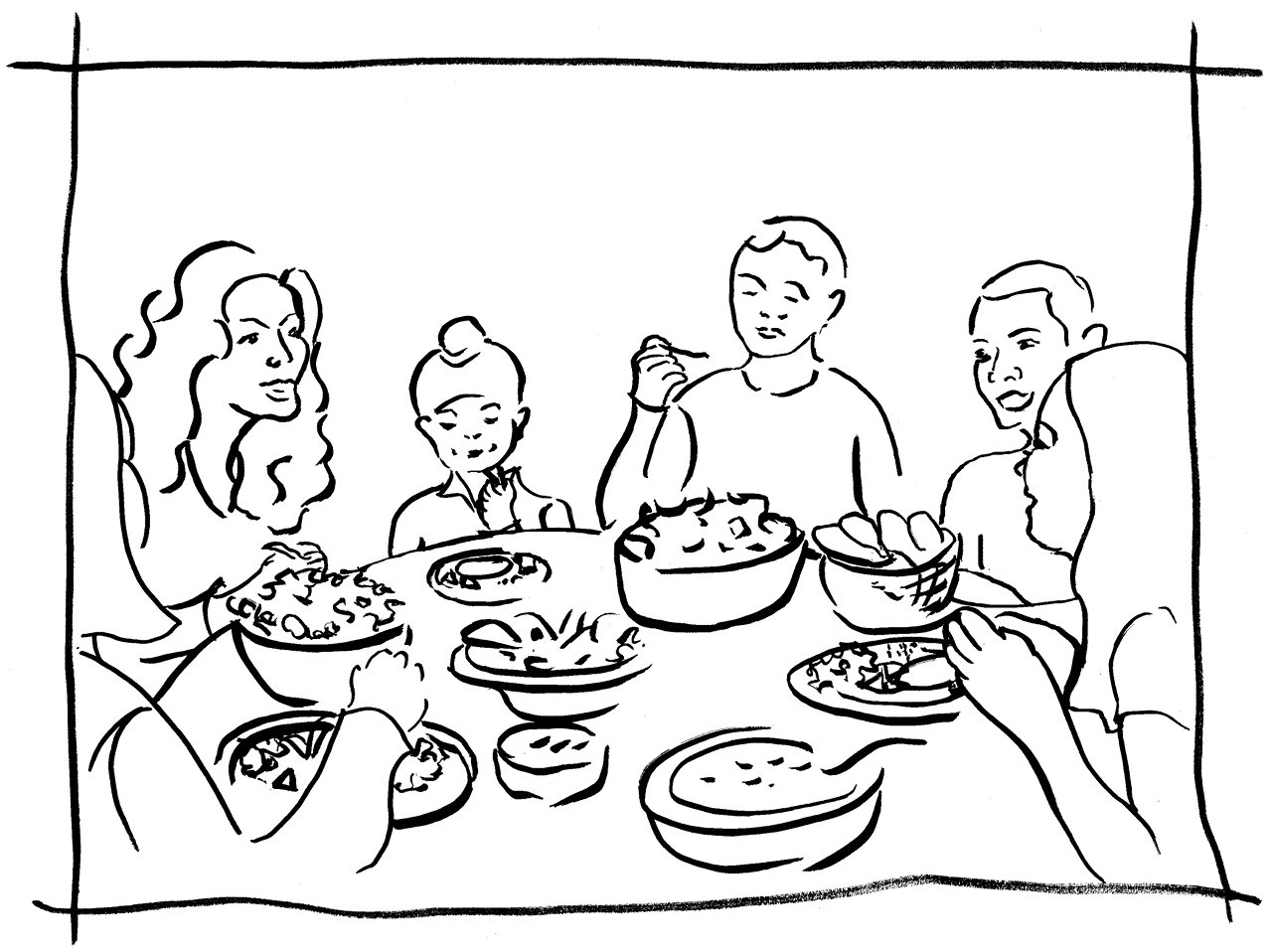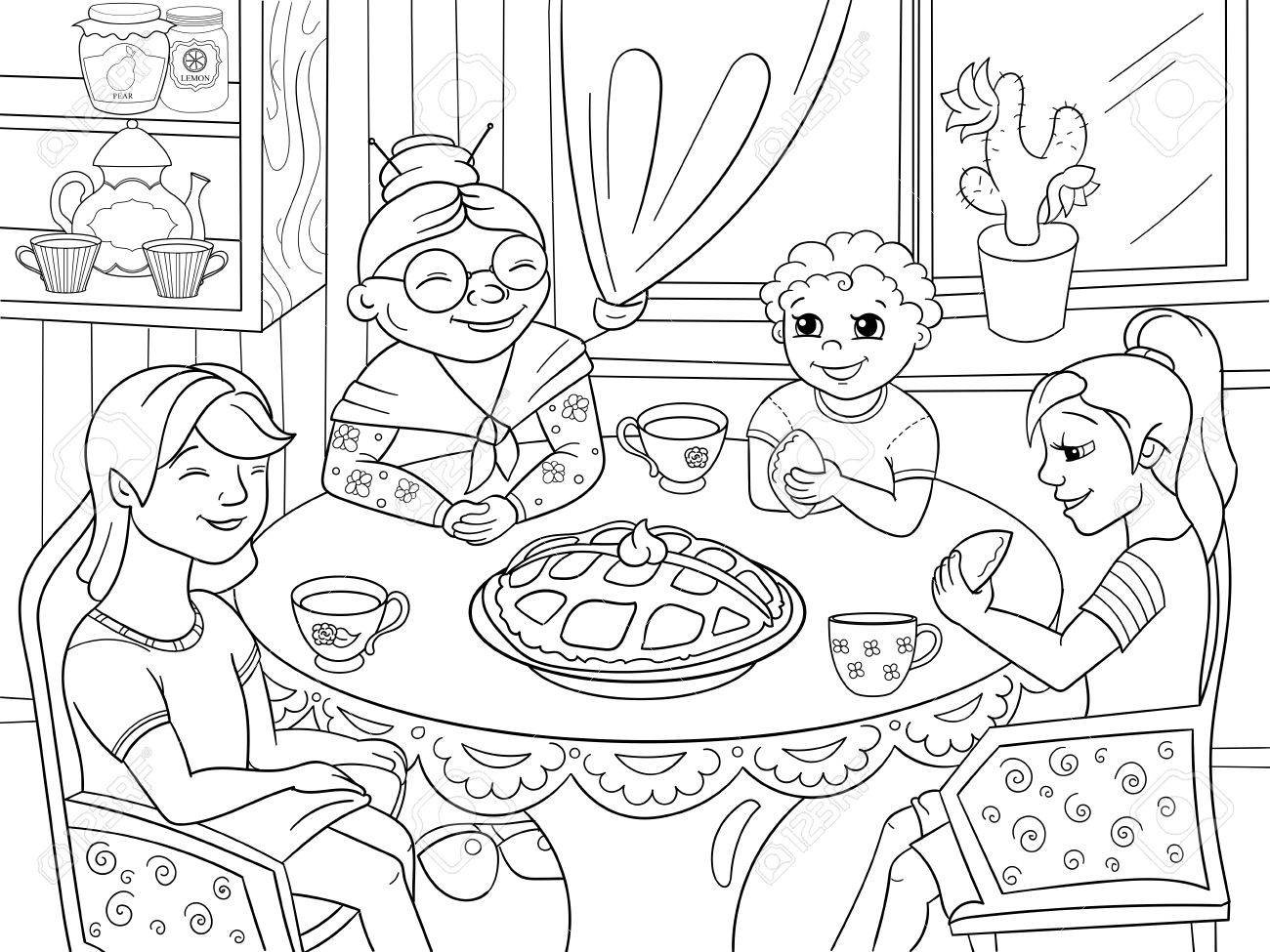 Раскраска семейный обед