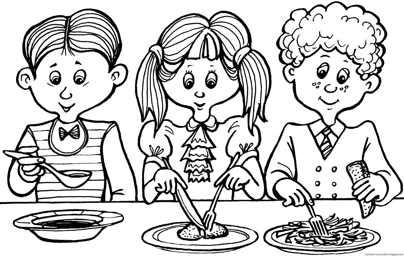 Дети едят раскраска