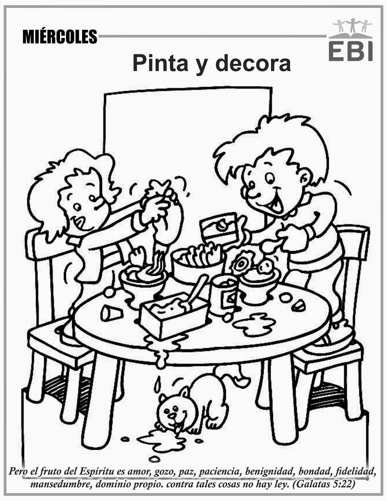 Раскраска дети едят за столом