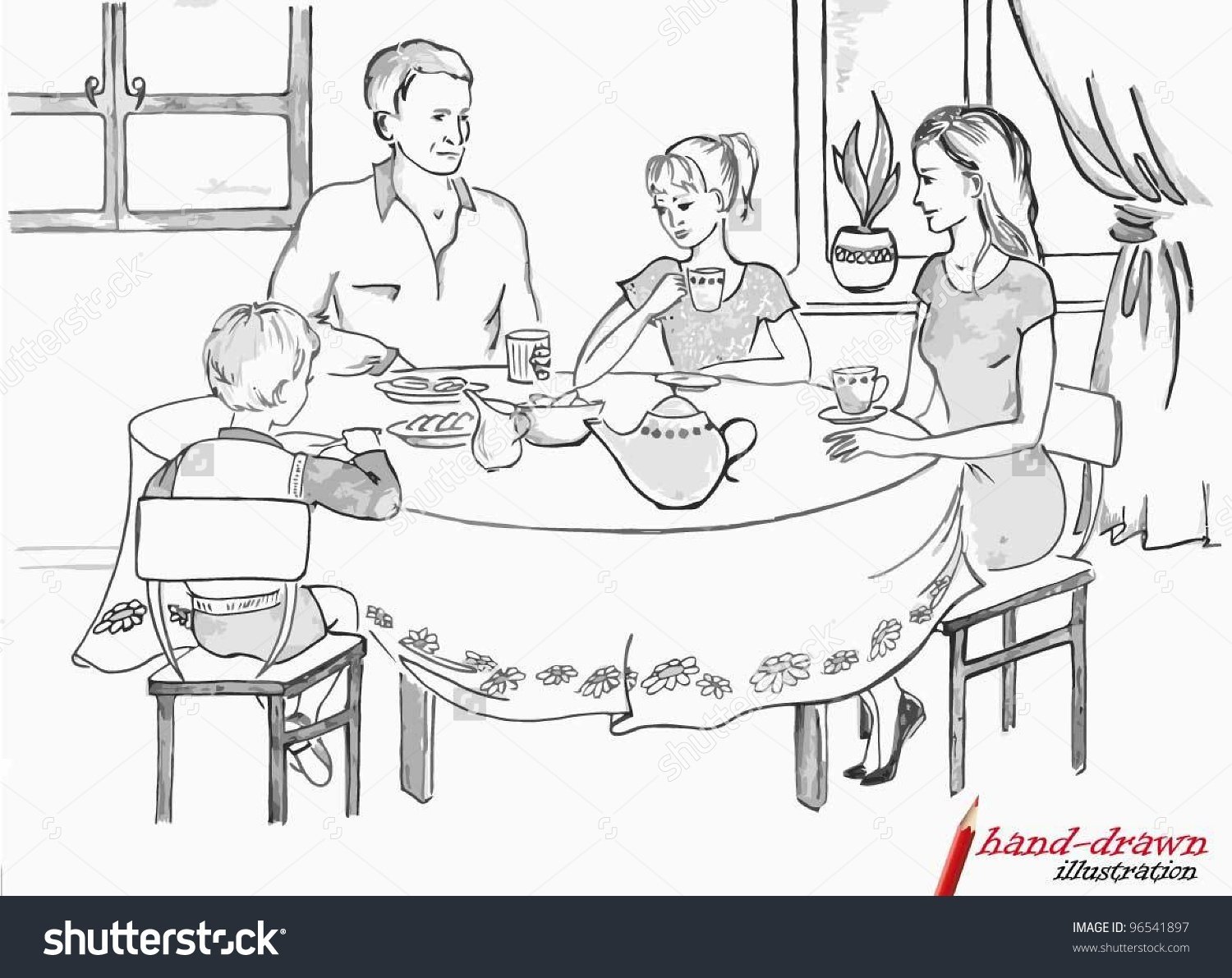 Семейное чаепитие нарисовать
